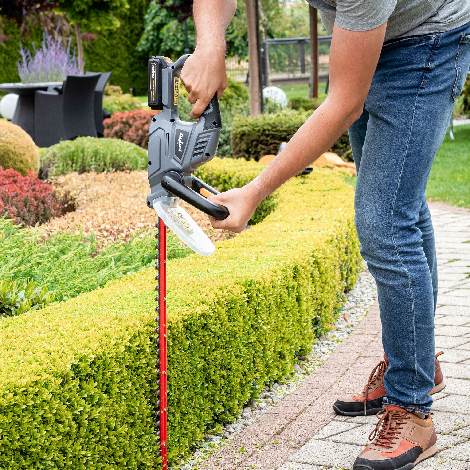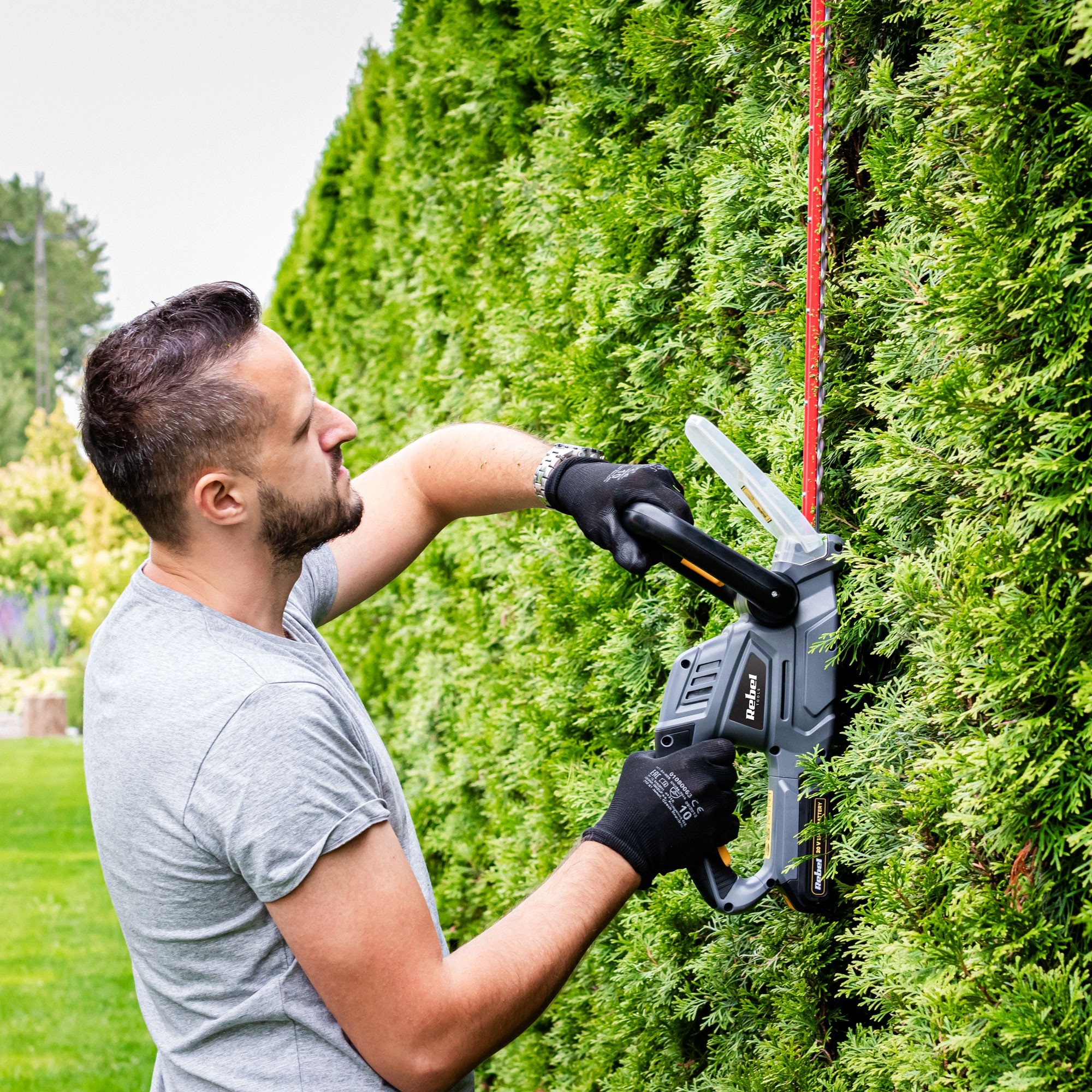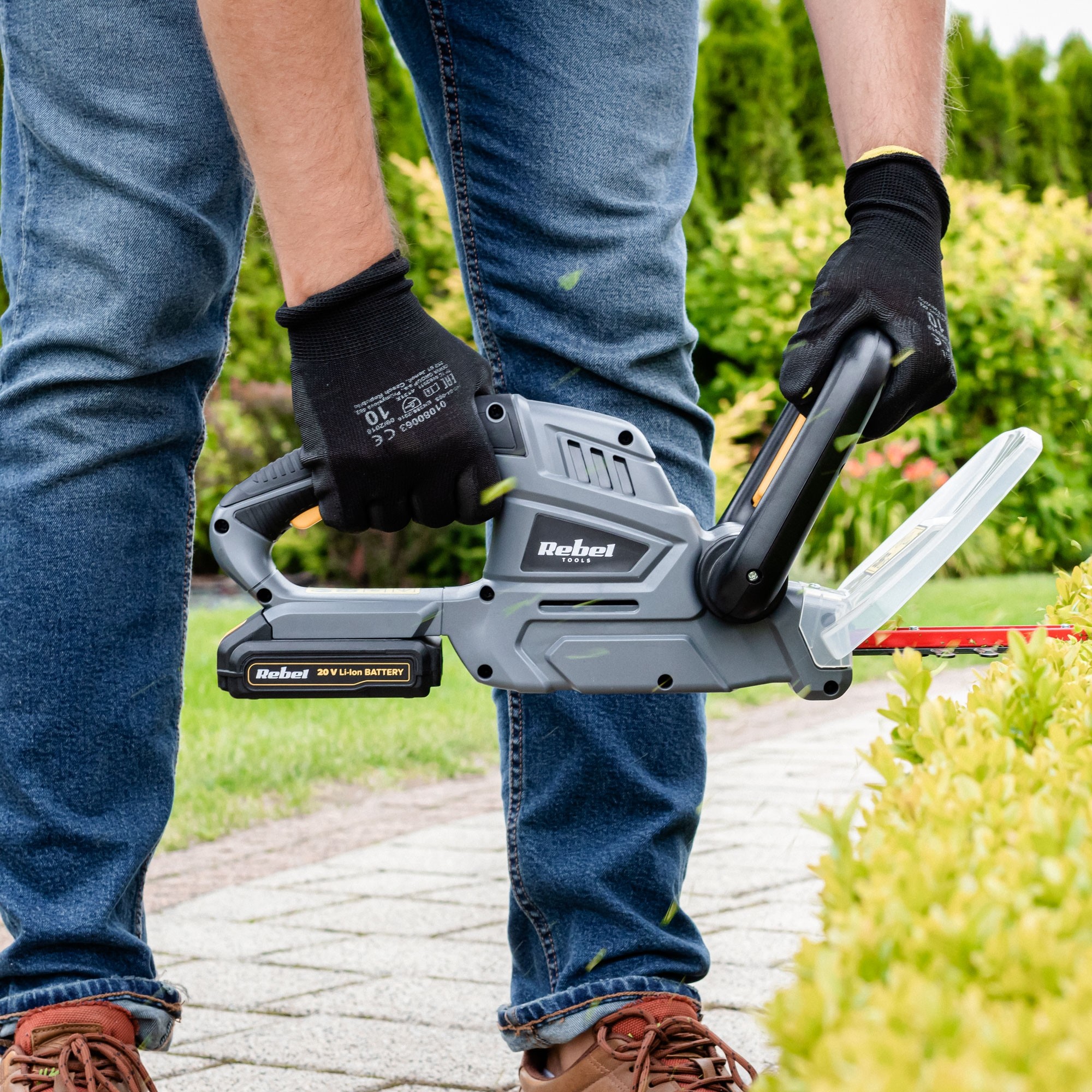Якщо ви докладаєте багато зусиль для того, щоб кущі та живоплоти у вашому саду були гарно підстриженими, у нас є щось, що заощадить вам купу часу та зусиль! Замініть традиційні ручні тримери для живоплоту бездротовими тримерами серії Rebel Tools. Пристрій оснащений міцним сталевим лезом з лазерним різанням довжиною 520 мм , що дозволяє швидко, зручно та точно підстригати навіть широкі живоплоти. Для додаткової зручності та безпеки ножиці оснащені передньою ручкою та захисним кожухом .