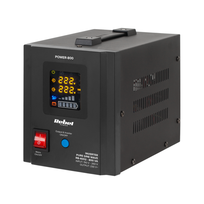 Аварійне джерело живлення Rebel POWER-800 RB-4002 Такий пристрій автоматично переходить на живлення від батареї, щоб уникнути непередбачених збоїв у роботі чутливої апаратури,