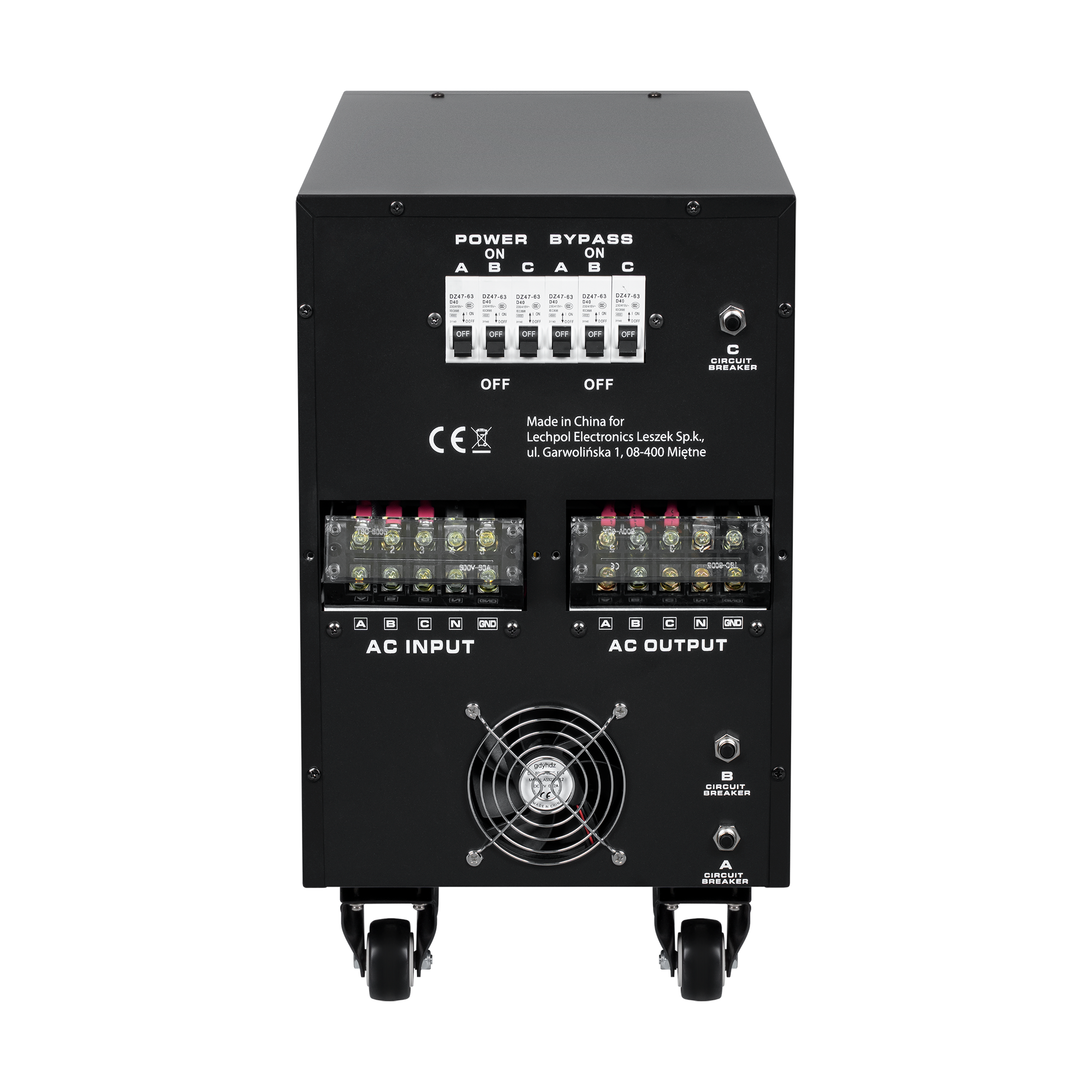 У трифазному режимі важливо дотримати баланс між фазами. Стабілізатор контролює та контролює напругу на кожній фазі, щоб забезпечити відповідність між ними – він компенсує занадто високу або занадто низьку вхідну напругу та забезпечить вихідну напругу після стабілізації. Якщо в цьому режимі одна з фаз працює некоректно або не підключена, пристрій спрацює захист і не подаватиме напругу на вихід, повідомляючи про це індикатором «ПОМИЛКА ФАЗИ».