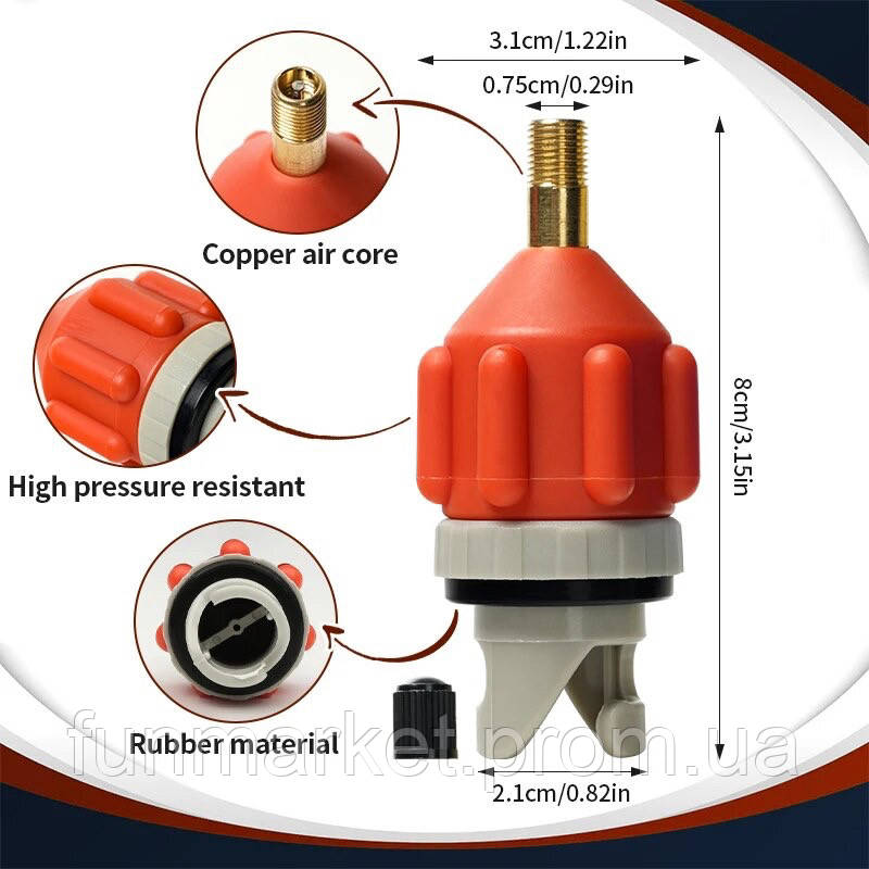 Багатофункціональний адаптер для клапана повітряного насоса для SUP оранжевий