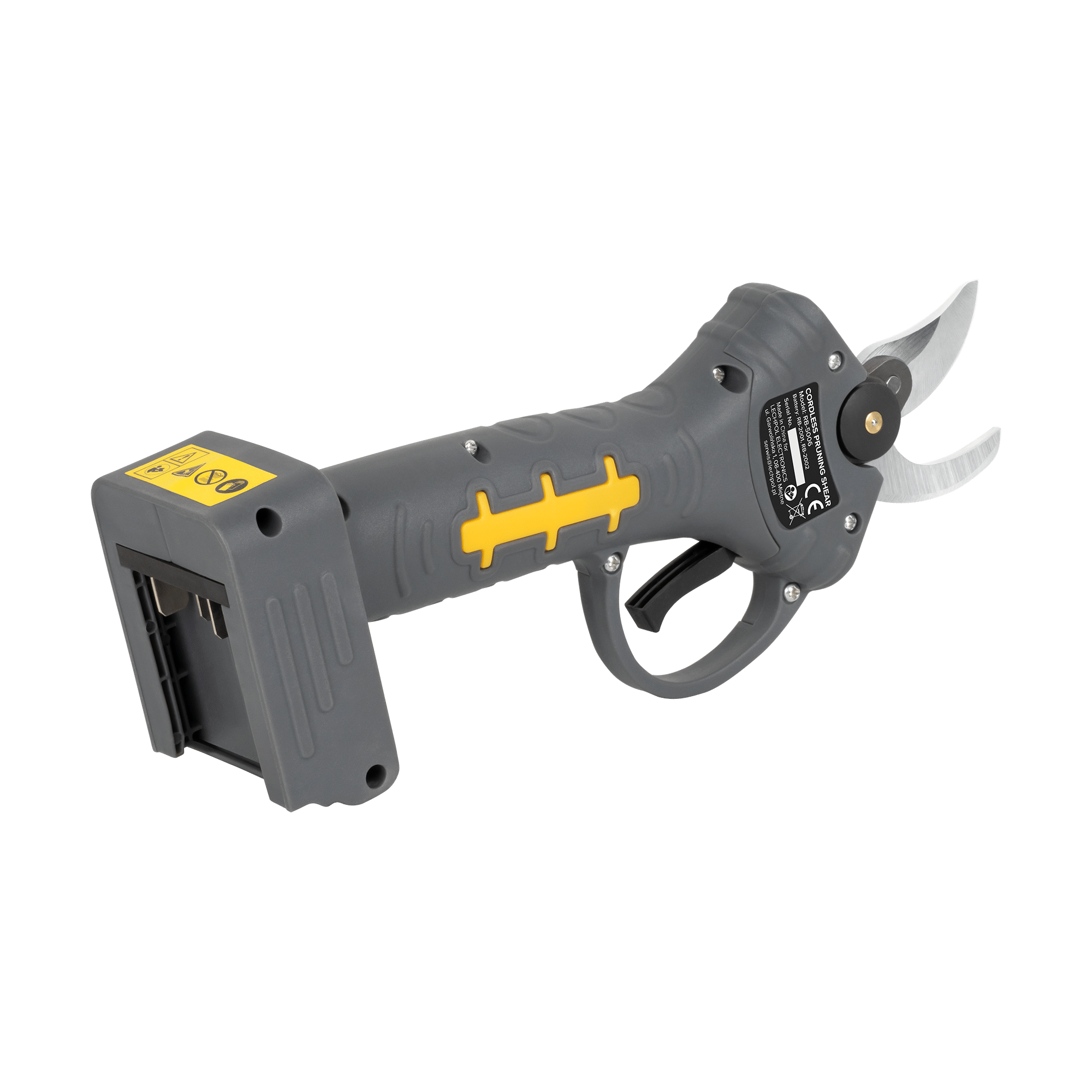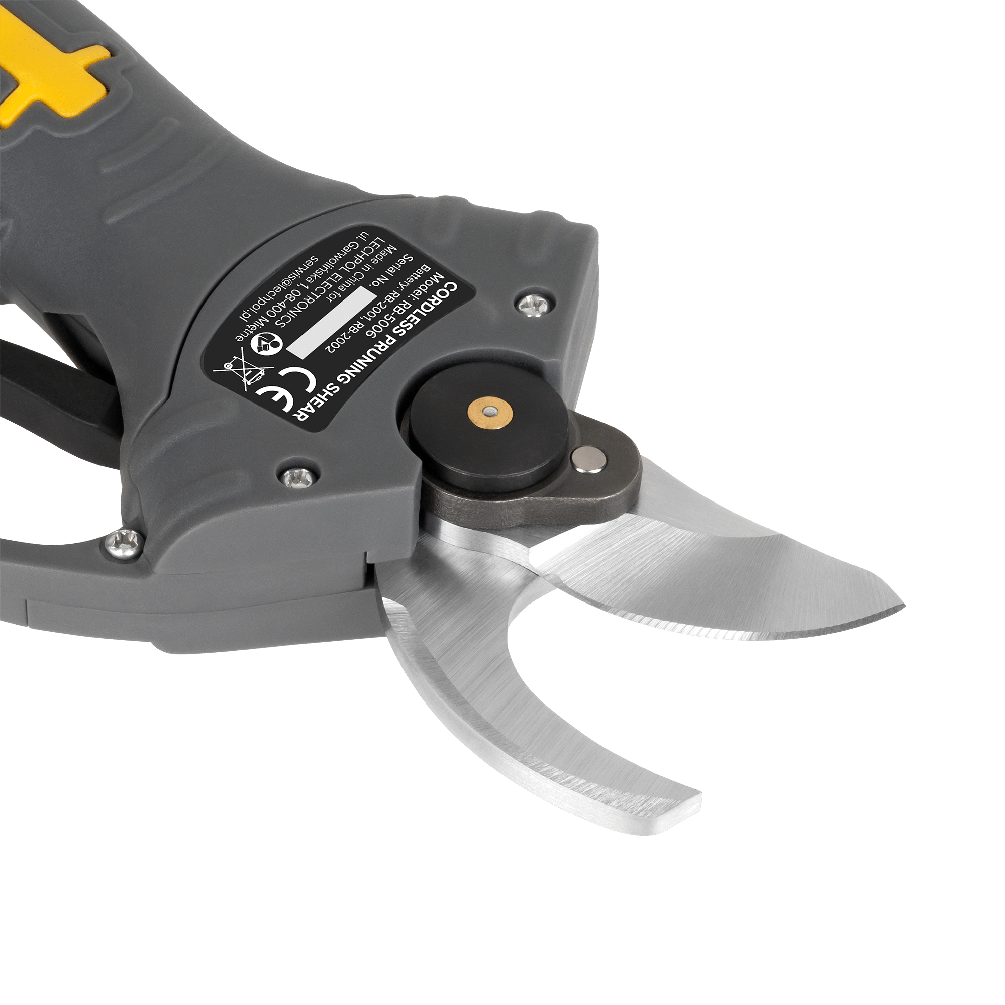 Його головна перевага — мінімальне навантаження на руки: замість механічного зусилля достатньо натиснути кнопку, і інструмент сам робить чистий зріз. Це особливо зручно при великому обсязі роботи в саду.