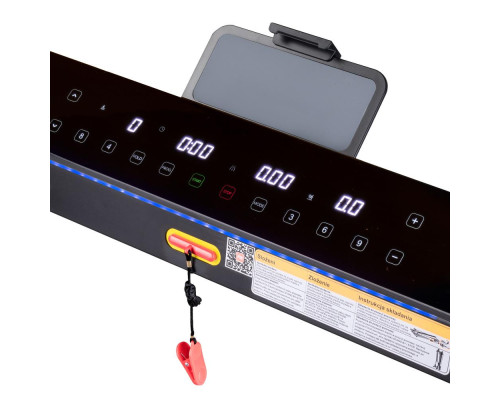 Якщо ви хочете відстежувати свій пульс під час тренувань, ви можете зробити це, оскільки бігова доріжка оснащена нагрудним ремінцем і має ручки із вбудованими датчиками серцевого ритму. Якщо ручки заважають вам під час тренування, ви можете скласти їх, щоб отримати додатковий простір. Ще однією унікальною особливістю цієї бігової доріжки є барвиста панель управління з підсвічуванням. Яка змінює кольори залежно від того, наскільки швидко ви рухаєтесь зоною бігу.