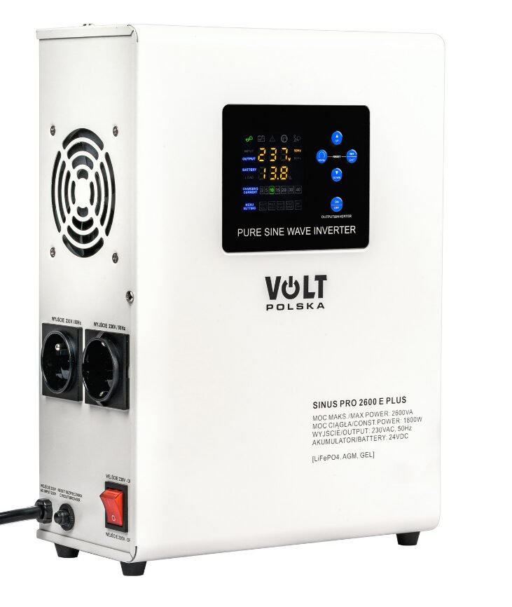 ДБЖ VOLT POLSKA SINUS PRO 2600E PLUS LIFEPO4 24/230 В Це пристрій, що автоматично перемикається з мережевого живлення на акумуляторне, забезпечуючи безперервну подачу електрики для побутових та чутливих електронних приладів, таких як комп’ютери, сервери, побутова техніка чи системи опалення.