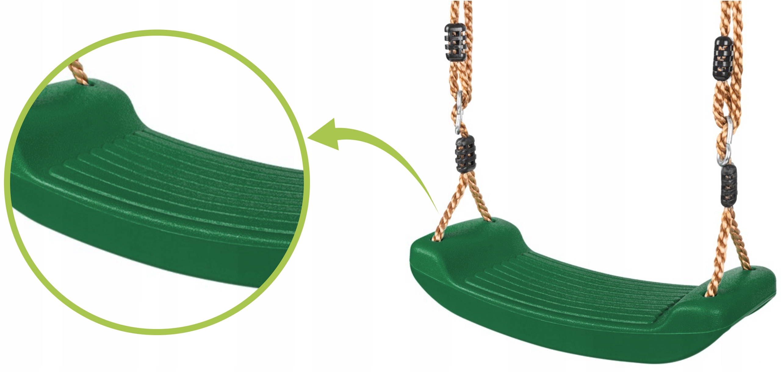 Контурна поверхня сидіння  забезпечує більший  комфорт і стабільність  під час гри. Завдяки своїй формі дитина має кращу підтримку, що зменшує ризик ковзання під час гойдання.