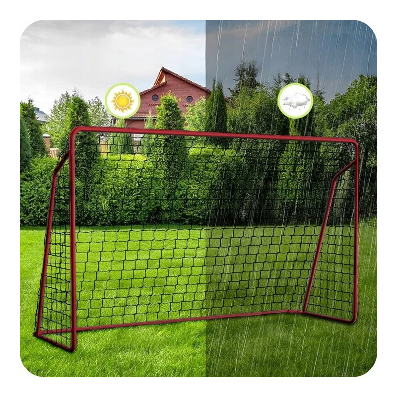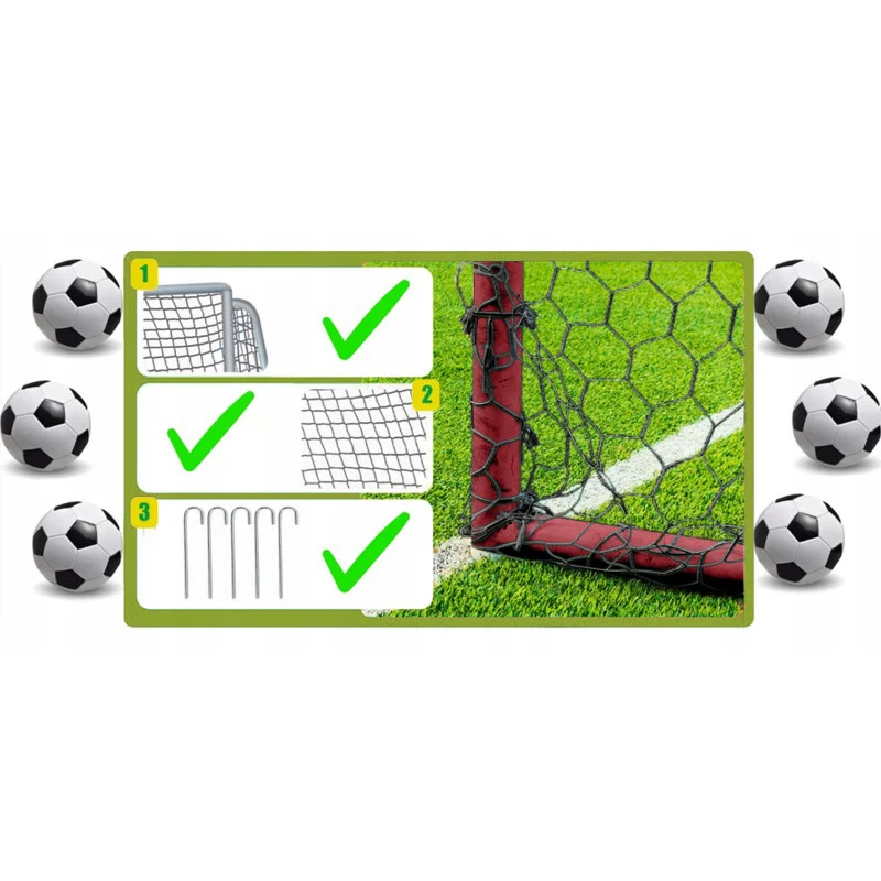 - Міцна сітка з ПЕ – виготовлена з міцного поліетилену, стійкого до стирання та розтягування. Її міцна структура гарантує, що ворота прослужать багато років інтенсивних тренувань.