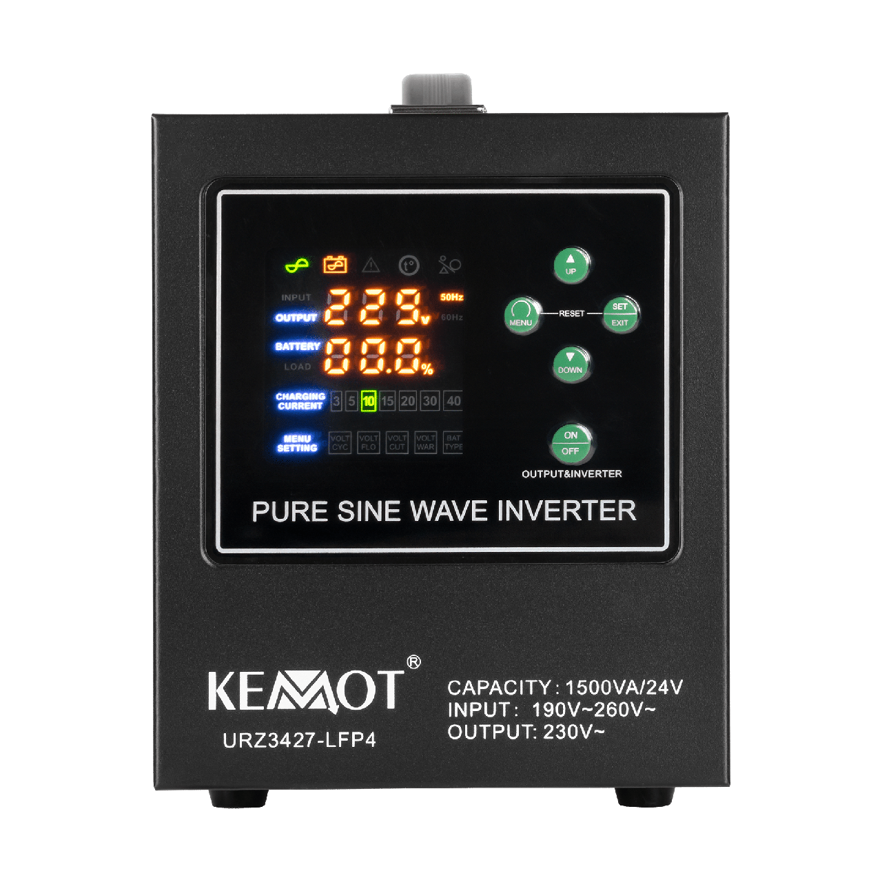 Джерело безперебійного живлення KEMOT PROsinus-1500/24-LFP4 24V 230V 1500VA/1050W (URZ3427-24-LFP4) це надійне джерело безперебійного живлення (ДБЖ) з чистою синусоїдою та вбудованою функцією зарядки акумулятора.