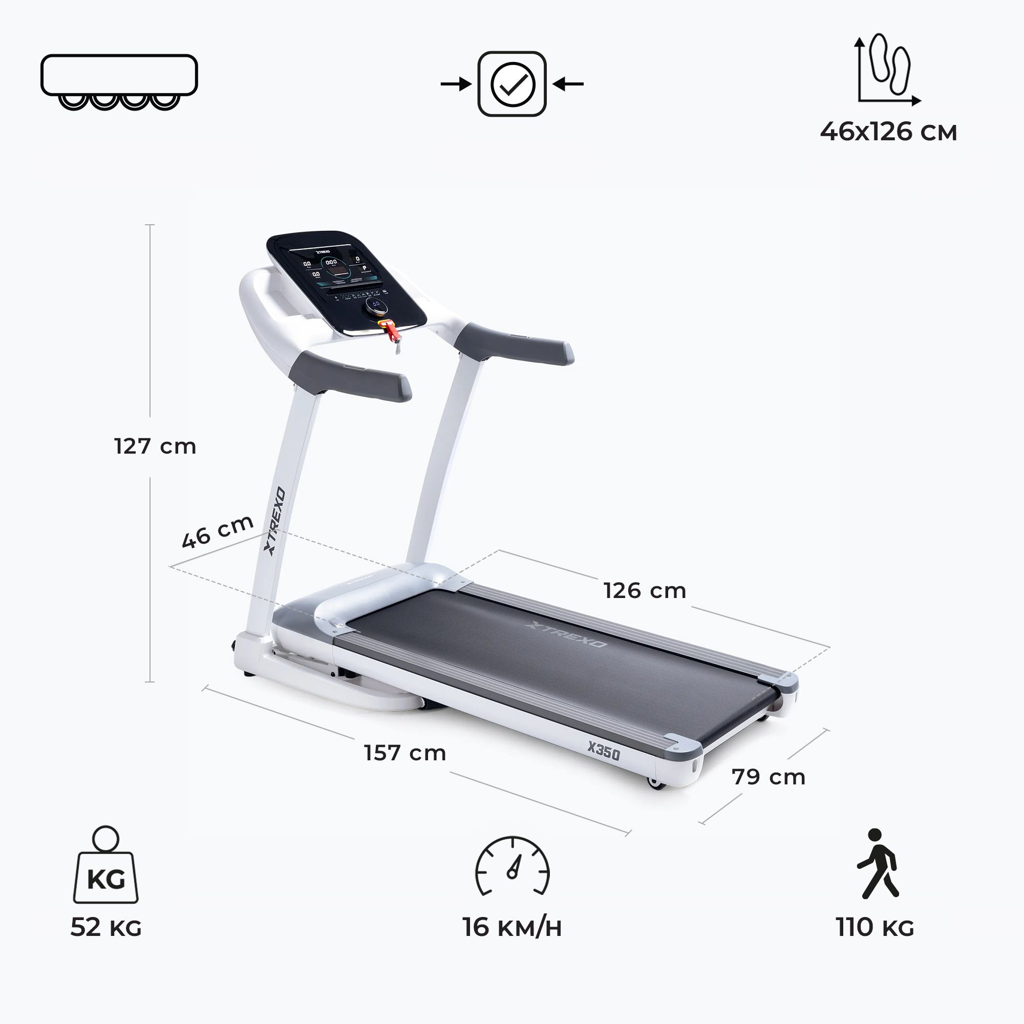 Електрична бігова доріжка XTREXO TXO-X350-W білого кольору (TXO-B4W014-W)