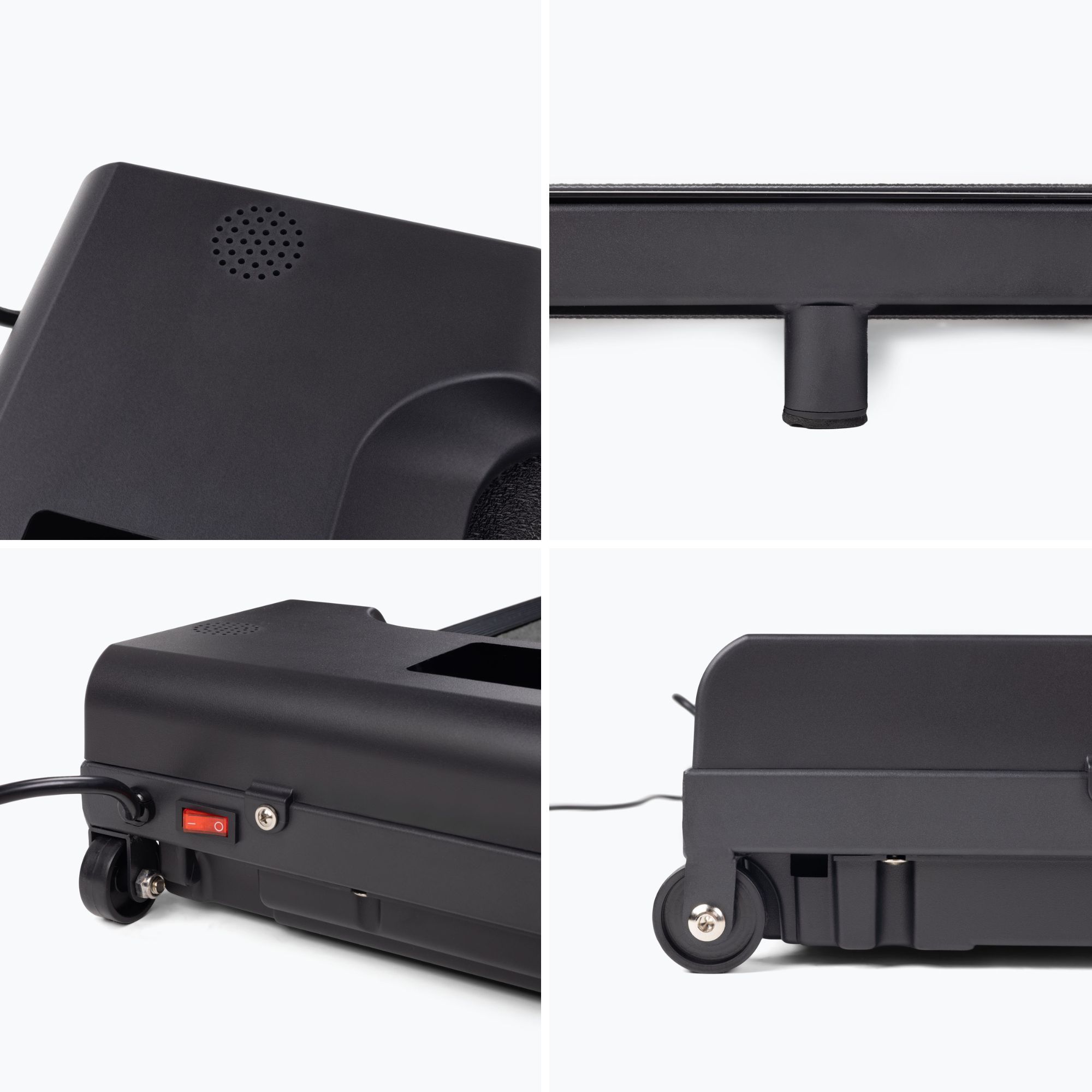 Бігова доріжка оснащена біговим полотном розміром 1000 x 380 мм, що забезпечує комфортну поверхню для ходьби. Оптимальна ширина та довжина бігового полотна забезпечують безпеку та комфорт під час використання. Поверхня полотна виготовлена з нековзних матеріалів, що мінімізує ризик ковзання та забезпечує безпечний крок.