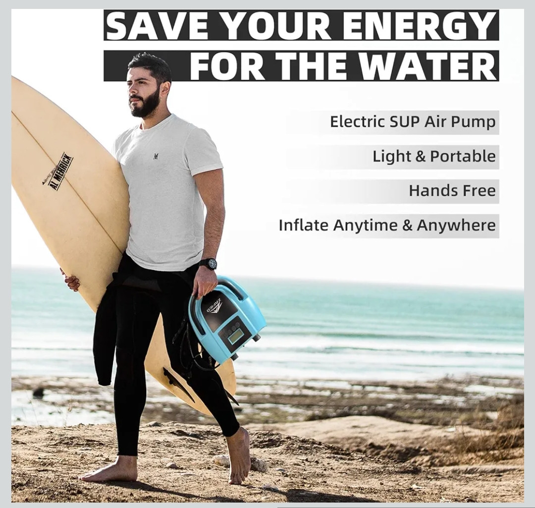 • Широкий спектр застосування: Наш насос для SUP постачається з 7 різними насадками та також підходить для надувних килимків, наметів, доків, м’ячів для йоги, каяків тощо. Для надувних виробів, що потребують тиску менше 1,5 фунтів на квадратний дюйм, високошвидкісний повітряний потік, що створюється основним двигуном, забезпечує швидше надування. Тиск до 20 фунтів на квадратний дюйм можна використовувати для широкого спектру продуктів.