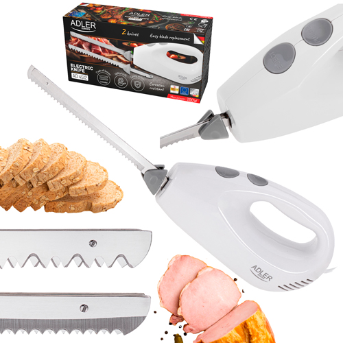Електричний ніж Adler AD 4512 – інвестиція в зручність і ефективність на вашій кухні. Замовте зараз і відчуйте різницю в нарізанні продуктів!