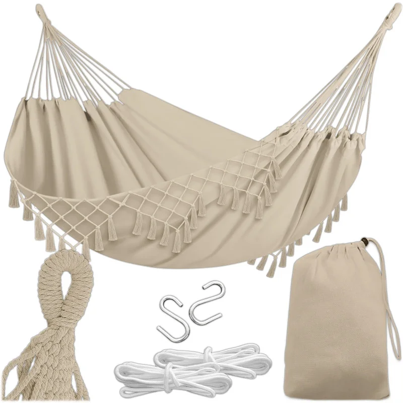- Бежевий колір гамака ідеально вписується в сучасні тенденції в дизайні саду та інтер’єру.