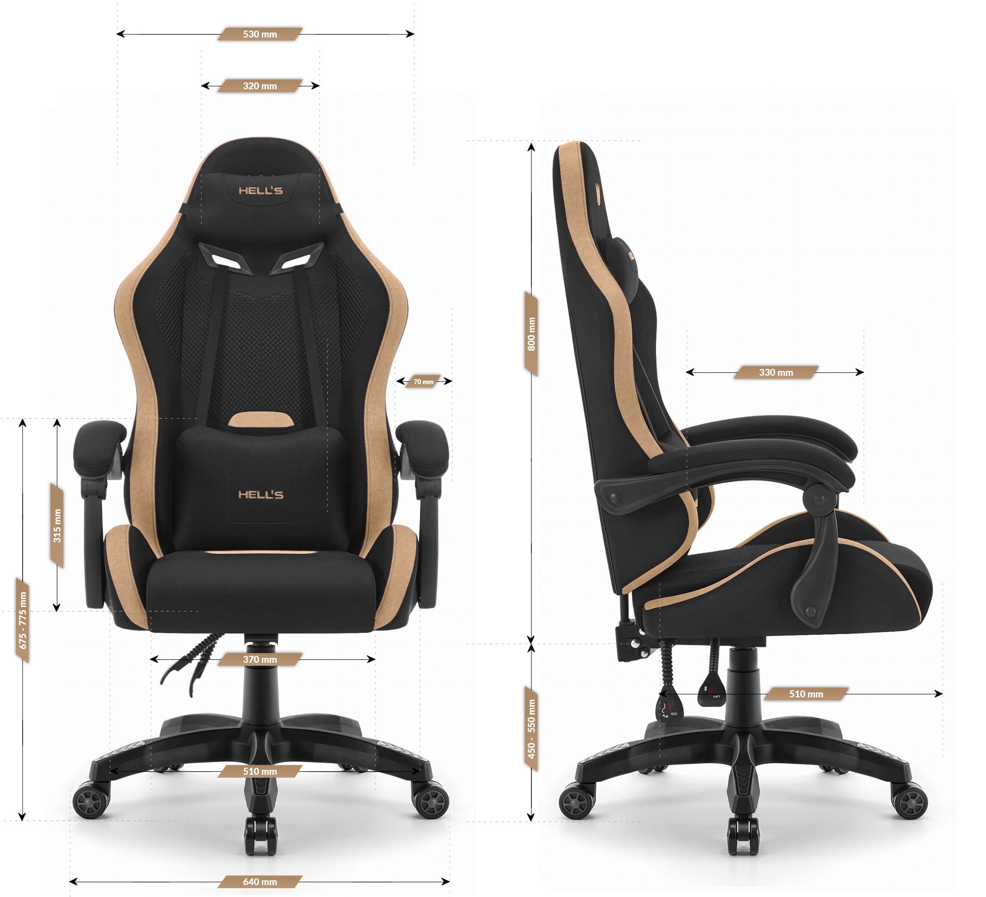 Геймерське крісло Hell’s Chair HC-1012 Black Biege тканина/замша