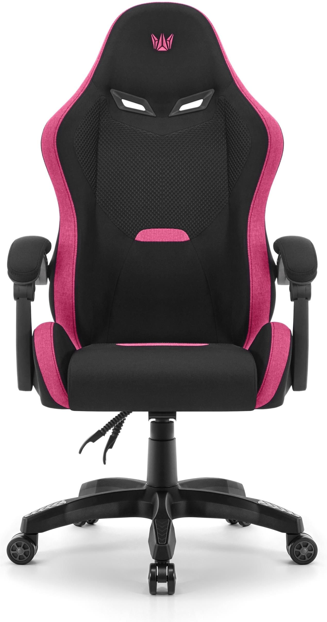 Глибокий чорний колір з яскравими рожевими акцентами створює ефектний контраст, що ідеально вписується в сучасні ігрові сетапи з неоновим підсвіченням або кіберпанк-атмосферою. М’яка тканинна оббивка приємна на дотик, дихає і виглядає дорого.