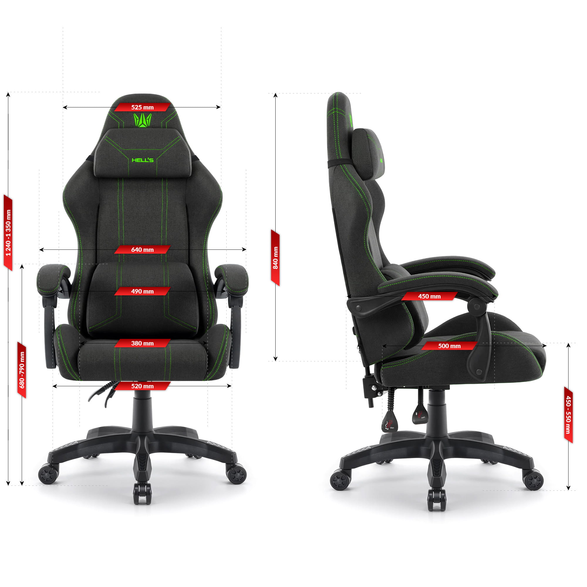 Геймерське крісло Hell’s Chair HC-1014 Black Green тканина