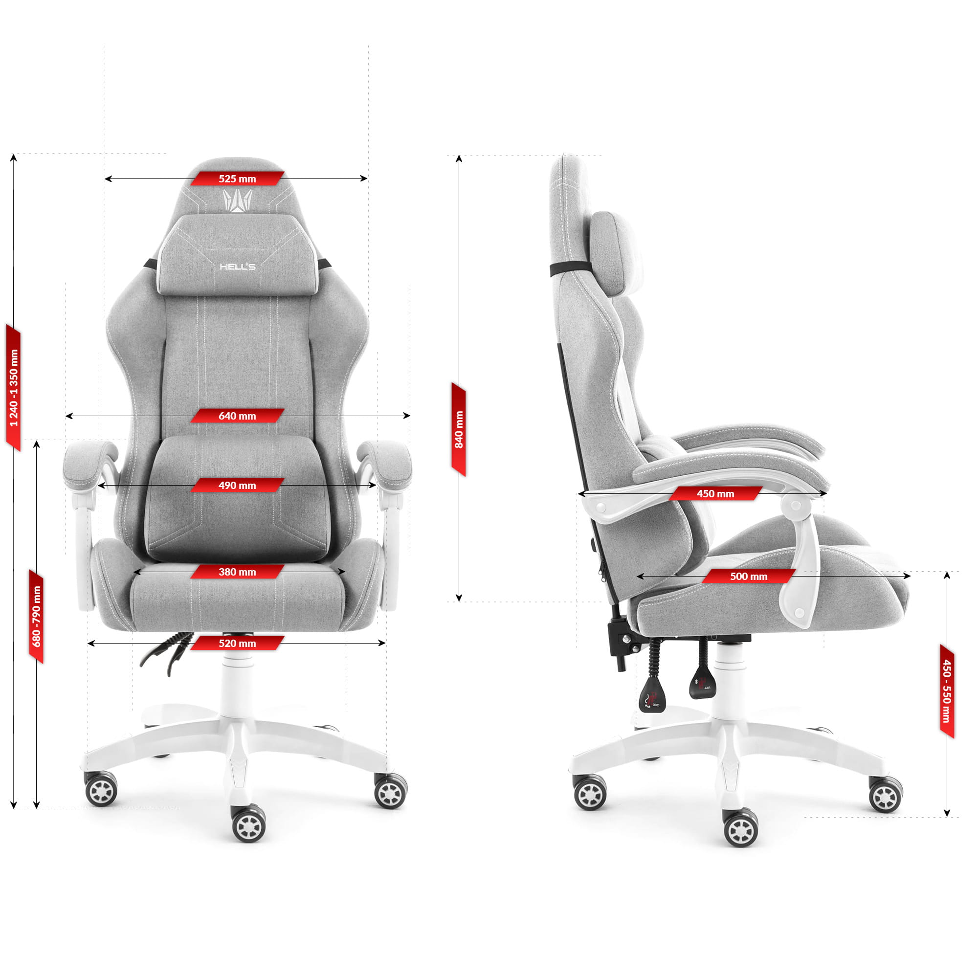 Геймерське крісло Hell’s Chair HC-1014 Grey White тканина