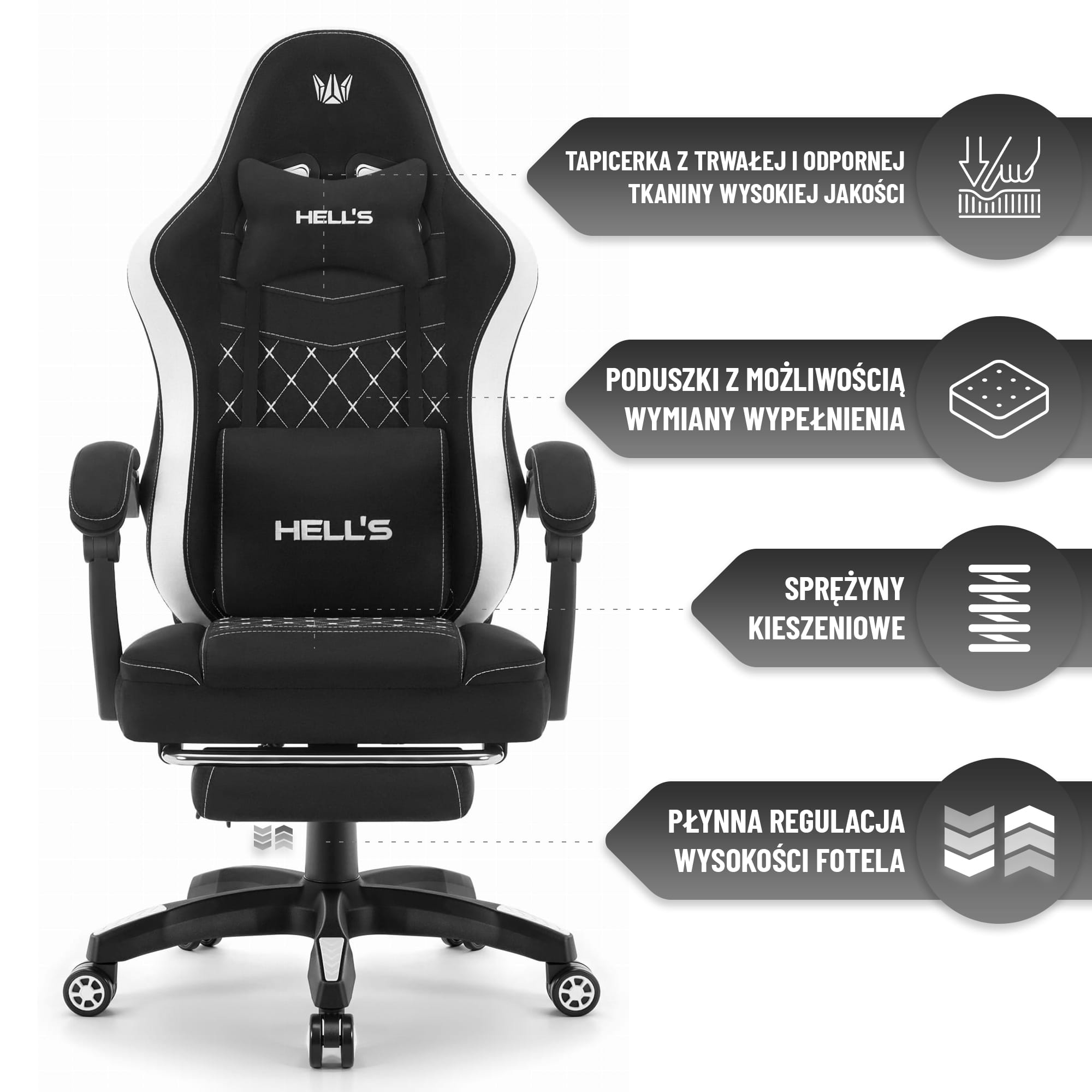 Геймерське крісло Hell’s Chair HC-1015 Black White тканина