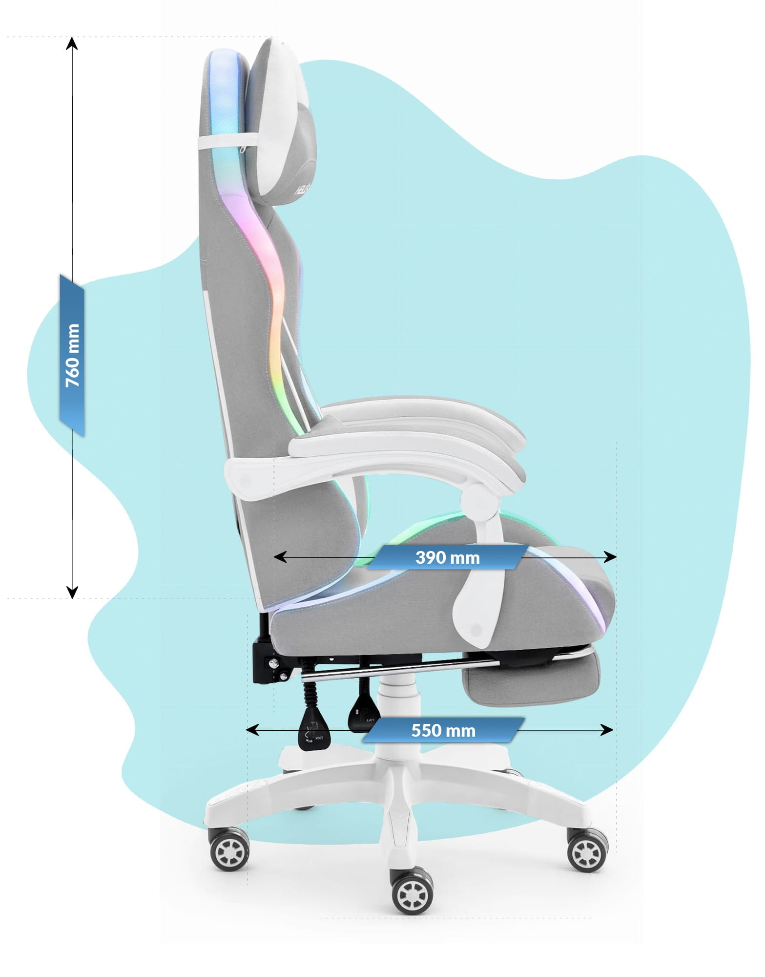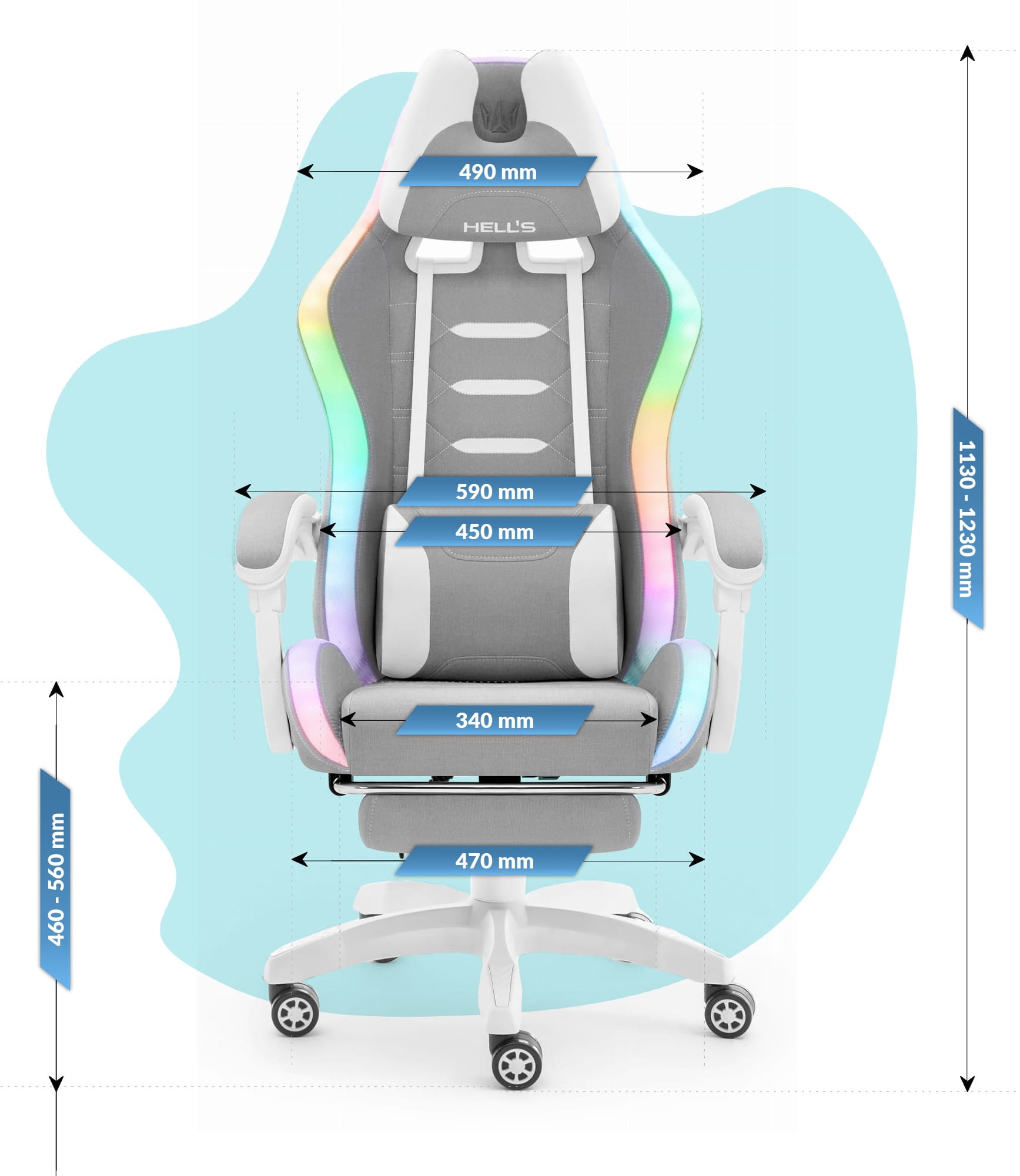 Геймерське крісло Hell’s Chair HC-1039 2.0 Grey White дитяче тканина Модель також має подушку для підтримки попереку, м’які подлокітники та висувний підніжок для розслаблення ніг. Все це разом робить її не лише привабливою зовні, але й комфортною для багатогодинного використання.
