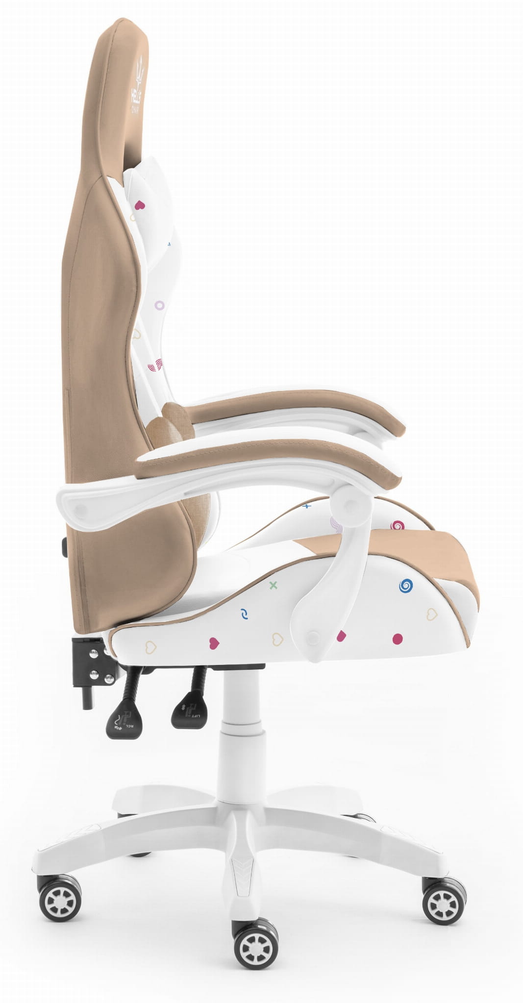 це стильне та ергономічне рішення для геймерів і офісних працівників, оббиття з м’якої екошкіри в бежевому відтінку з райдужними акцентами. Воно поєднує оригінальний дизайн з високим рівнем комфорту, підтримуючи правильну поставу та хребет під час довгих сесій гри чи роботи, а витончені деталі роблять його ідеальним компаньйоном для зосередженості.