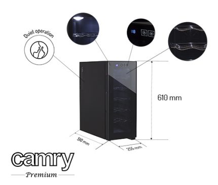 Комора для напоїв / вин AD 8083 AdlerКомора для напоїв AD 8083 — це пристрій, який пропонує чудові рішення для охолодження напоїв у елегантній формі. Завдяки місткій 33-літровій холодильній камері та профільованим полицям вміщує до 12 пляшок, що дозволяє зберігати різноманітний асортимент напоїв. Ємність до 33 літрів дозволить зберігати 12 пляшок на зручно профільованих полицях. Пляшки (по дві на кожному рівні) не б’ються одна об одну, і вино може спокійно дозрівати і остигати.