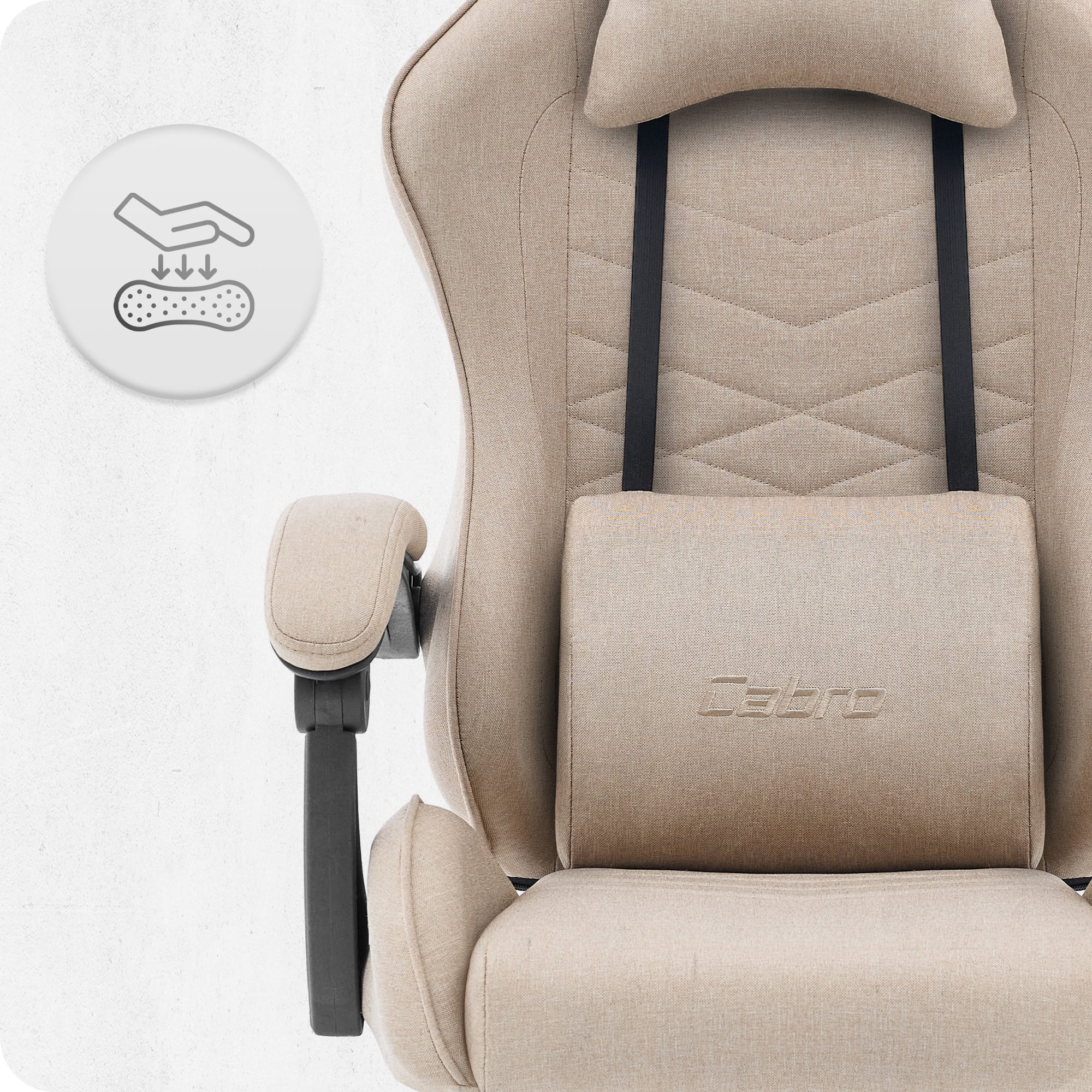 Ігрове крісло Cabro C500 Beige тканина Воно чудово підходить як для геймінгу, так і для роботи за комп’ютером, забезпечуючи зручну посадку навіть під час тривалого сидіння.