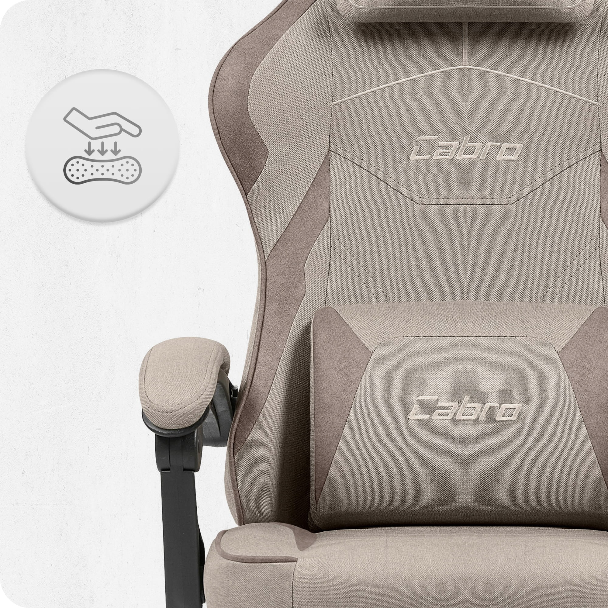 Ігрове крісло Cabro C502 Beige тканина М’яка тканинна оббивка добре пропускає повітря та приємна на дотик, завдяки чому крісло залишається комфортним навіть під час тривалого використання. Ергономічна форма спинки підтримує правильне положення тіла та сприяє зниженню навантаження на спину.