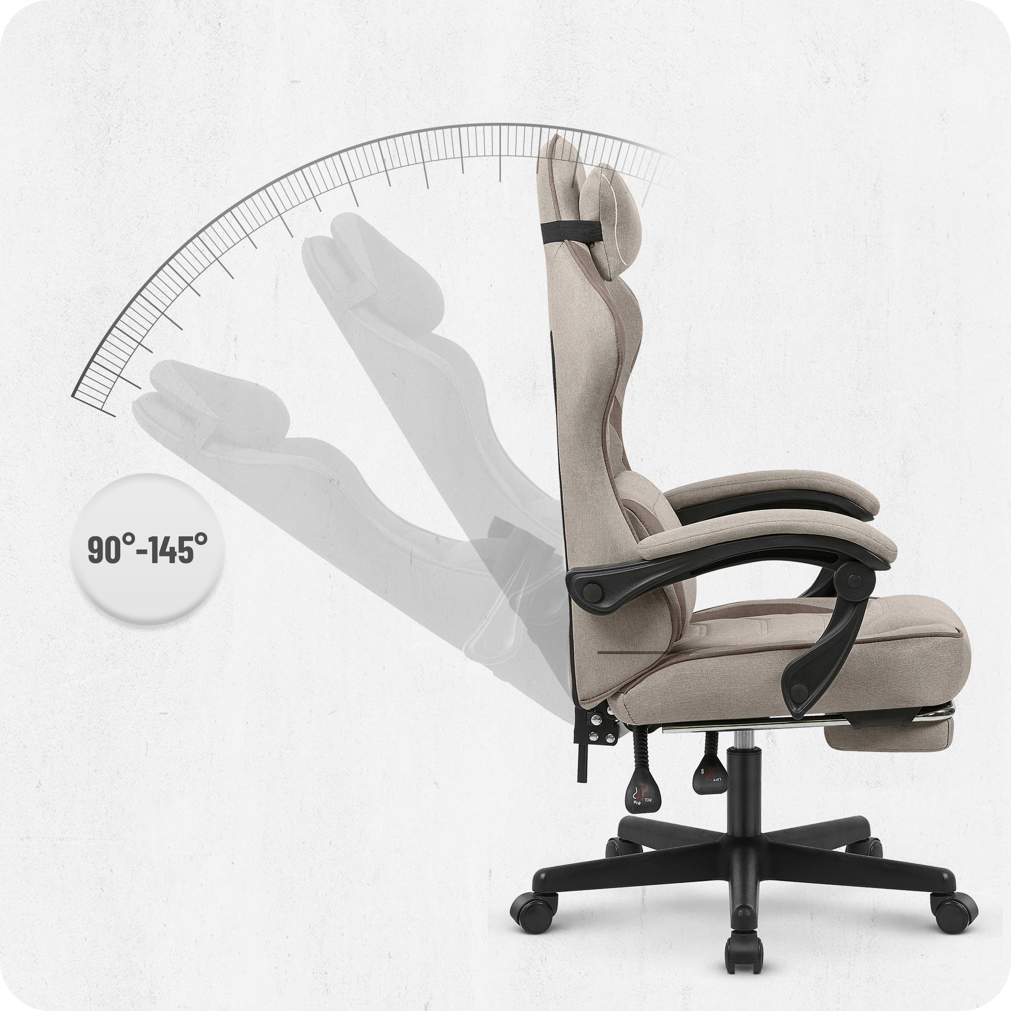 Завдяки плавному регулюванню спинки від 90 до 145 градусів , крісло адаптується до ваших потреб. Відрегулюйте сидіння у вертикальне положення для роботи чи навчання, або, коли ви хочете розслабитися, відкиньте спинку назад, щоб розслабитися після довгого дня. Повний комфорт та підтримка , незалежно від ситуації.