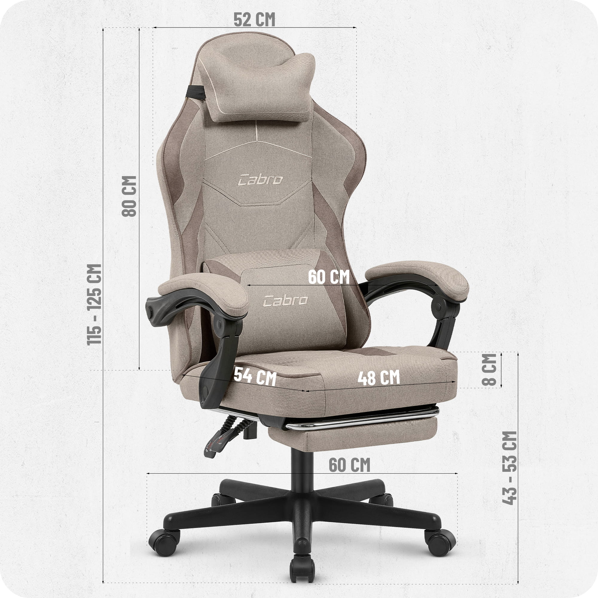 Геймерське крісло Cabro C502 – це ідеальне поєднання комфорту та сучасного стилю, розроблене для геймерів, які цінують комфорт та якість . Завдяки використанню міцних матеріалів, Cabro C502 гарантує стабільну підтримку протягом тривалих годин гри. Дихаюча, м’яка тканинна оббивка забезпечує чудову циркуляцію повітря та приємні відчуття, роблячи навіть найтриваліші ігрові сесії комфортнішими.
