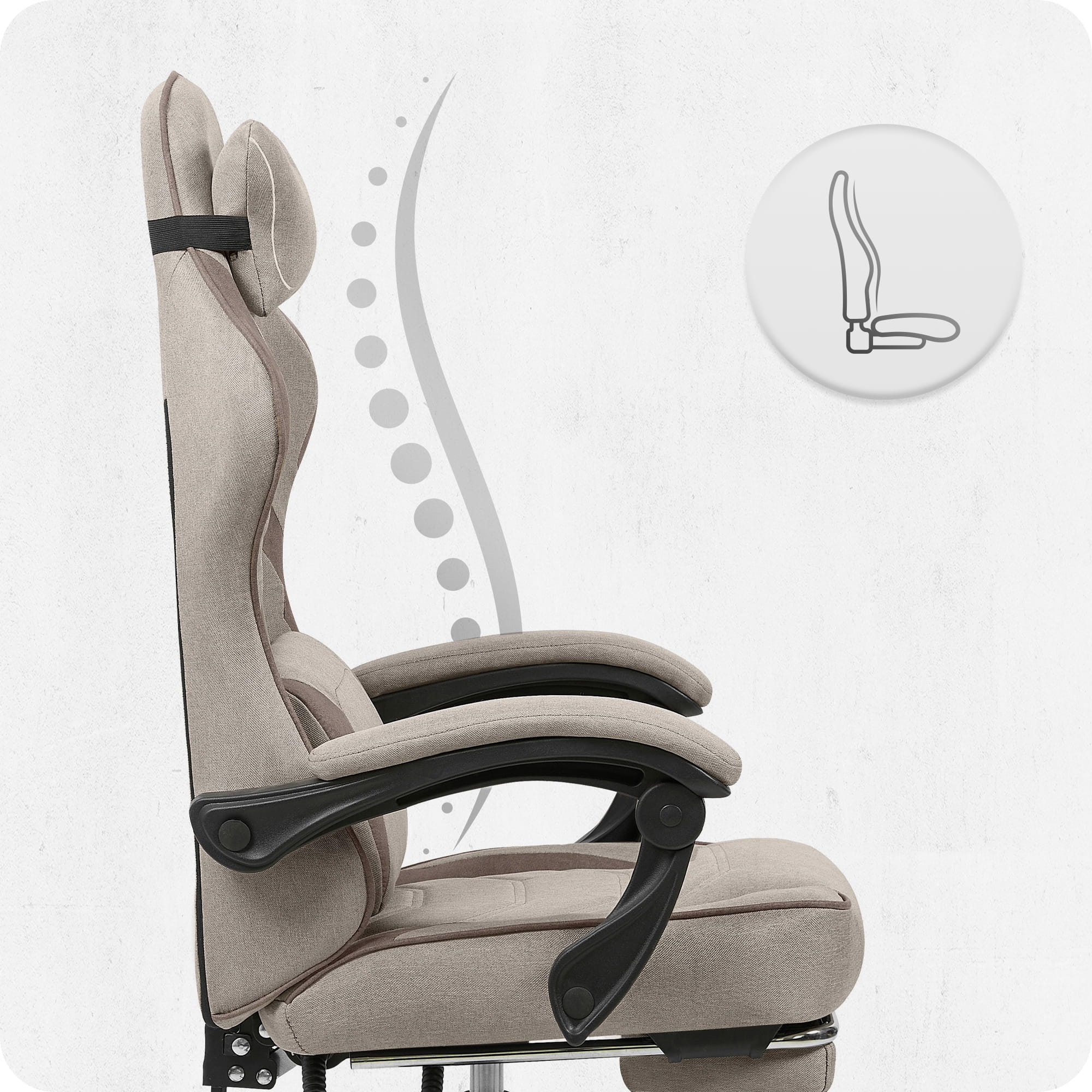 Контурна поперекова опора, підтримка шиї та голови допомагають підтримувати правильну поставу та зменшують біль у спині. Подушки регулюються , а наповнювач можна замінити.