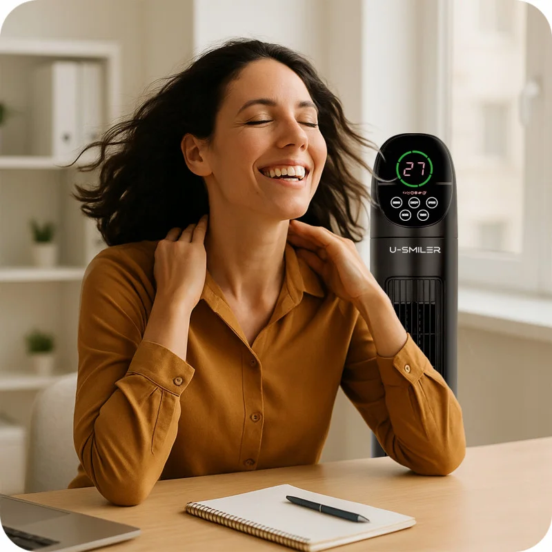 Вентилятор U-SMILER пропонує триступеневе керування, як дистанційне , так і ручне , що дозволяє вам повністю налаштувати потік повітря відповідно до ваших потреб. Оберіть легке освіження, середнє охолодження або сильний вітерець — все легко та зручно, не встаючи.