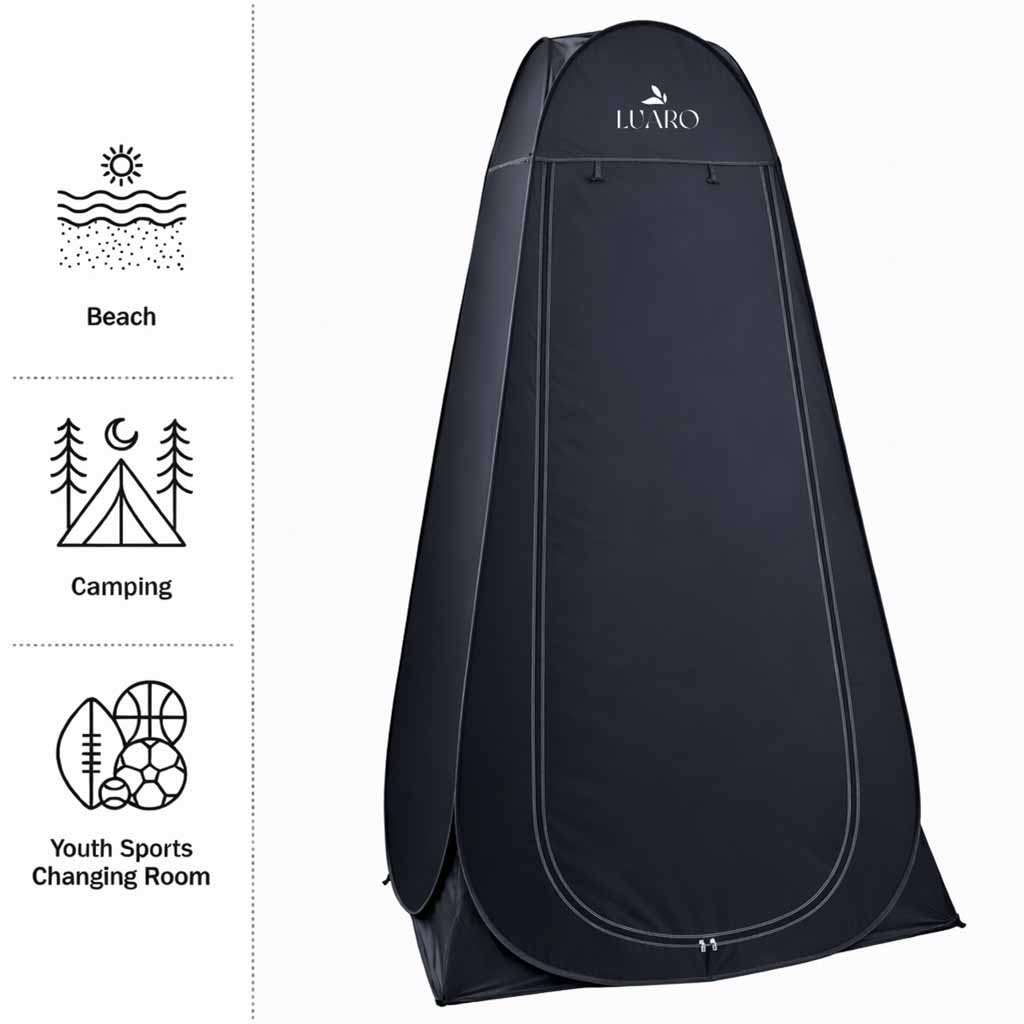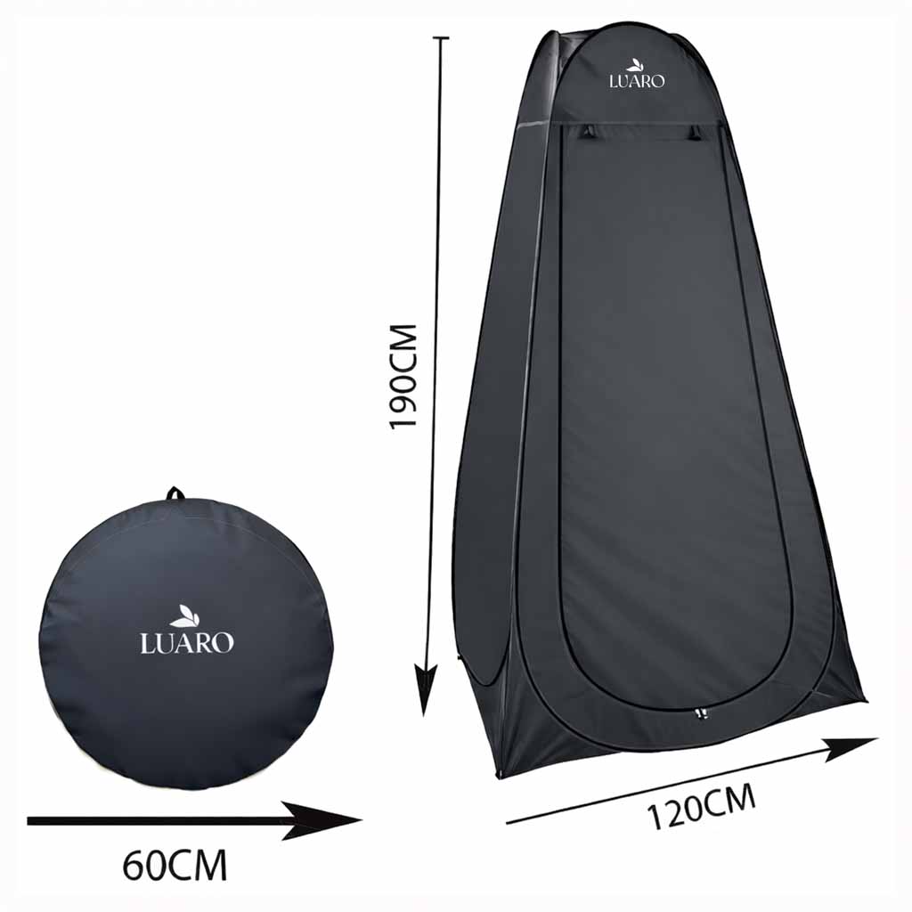 Ви цінуєте незалежність під час подорожей? Цей окремостоячий туристичний намет Luaro забезпечить вам миттєву приватність там, де вам її бракує. Всього за кілька хвилин у вас є високий намет , який слугує роздягальнею , укриттям для туристичного туалету та місцем для портативного туристичного душу . Самоскладальна конструкція з гнучким каркасом забезпечує швидке та легке розкладання. Це туристичний намет , який підійде для пляжу, кемпінгу та подорожей.