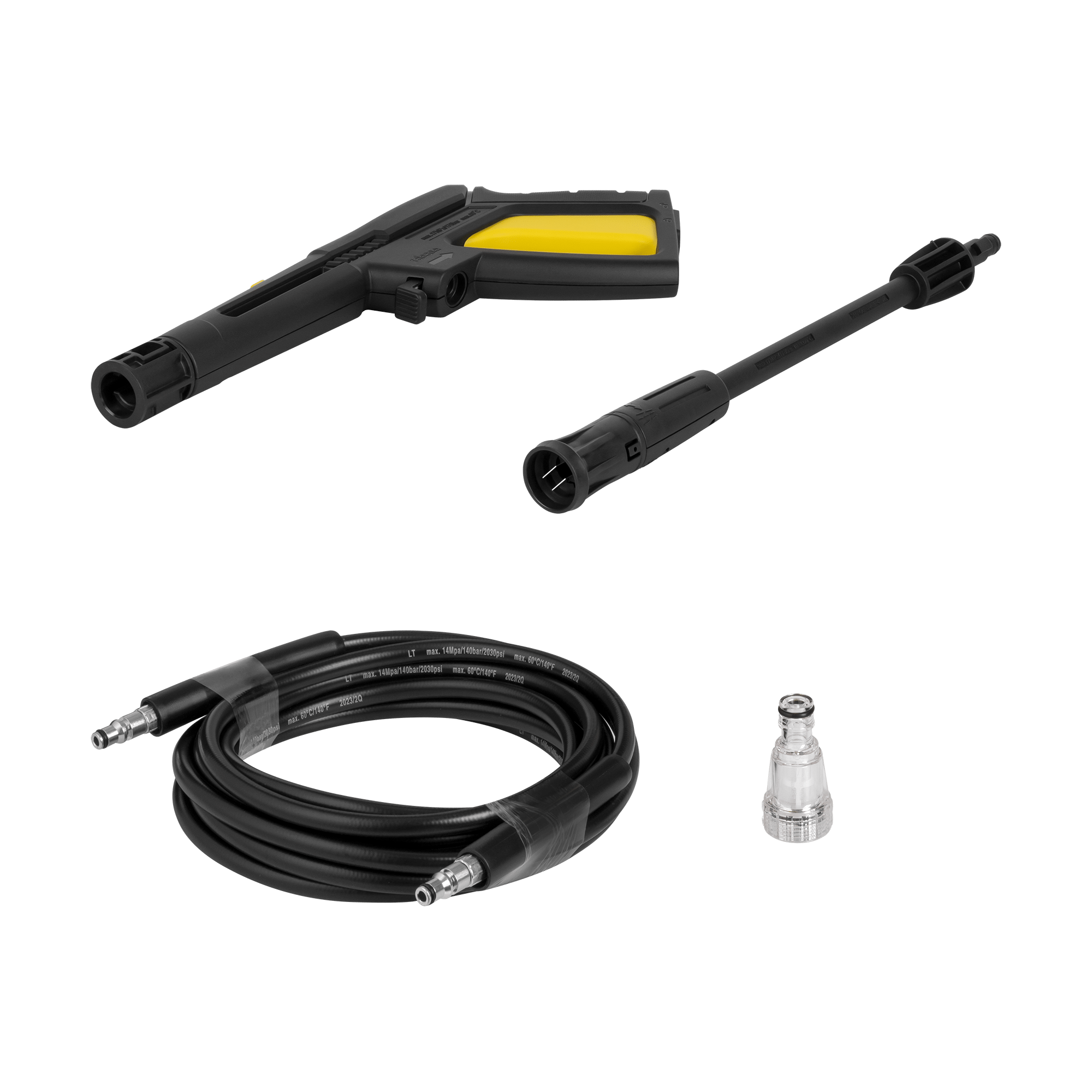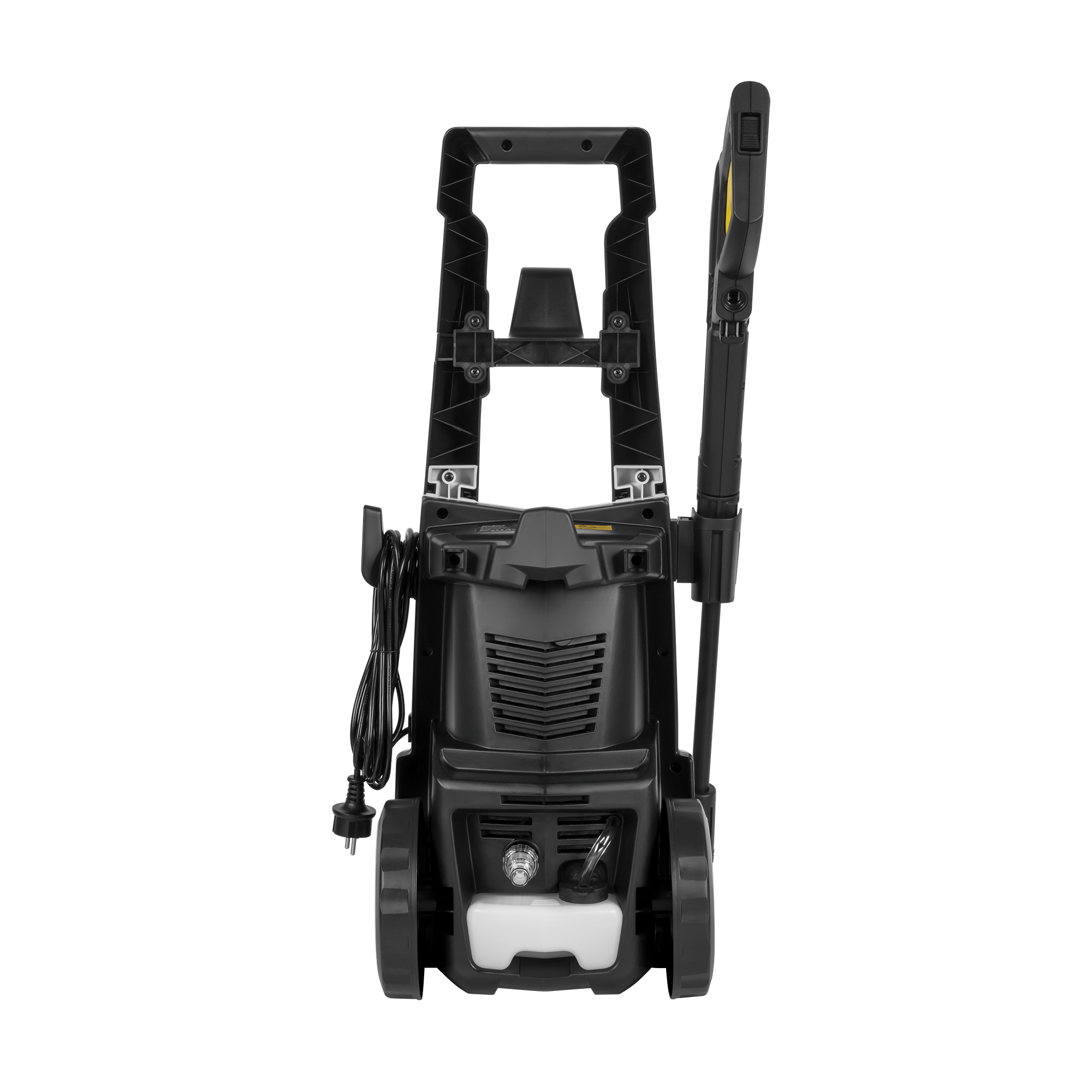 Мийка постачається з пістолетом, трубкою з регульованою насадкою, шлангом та вхідним адаптером з фільтром. Корпус пристрою також оснащений зручними ручками для легкого зберігання шланга та шнура живлення. Спеціальний відсік для зберігання полегшує зберігання трубки.