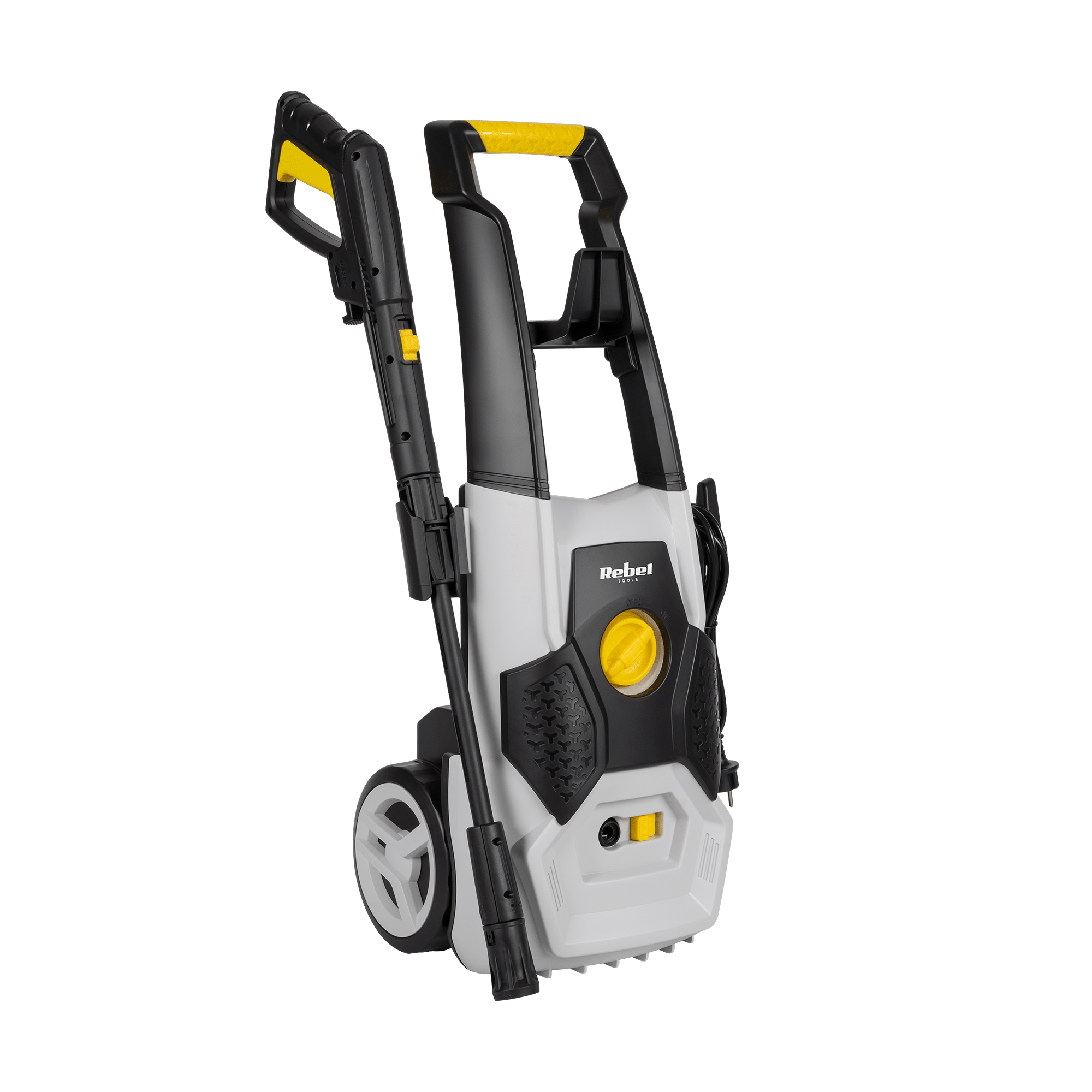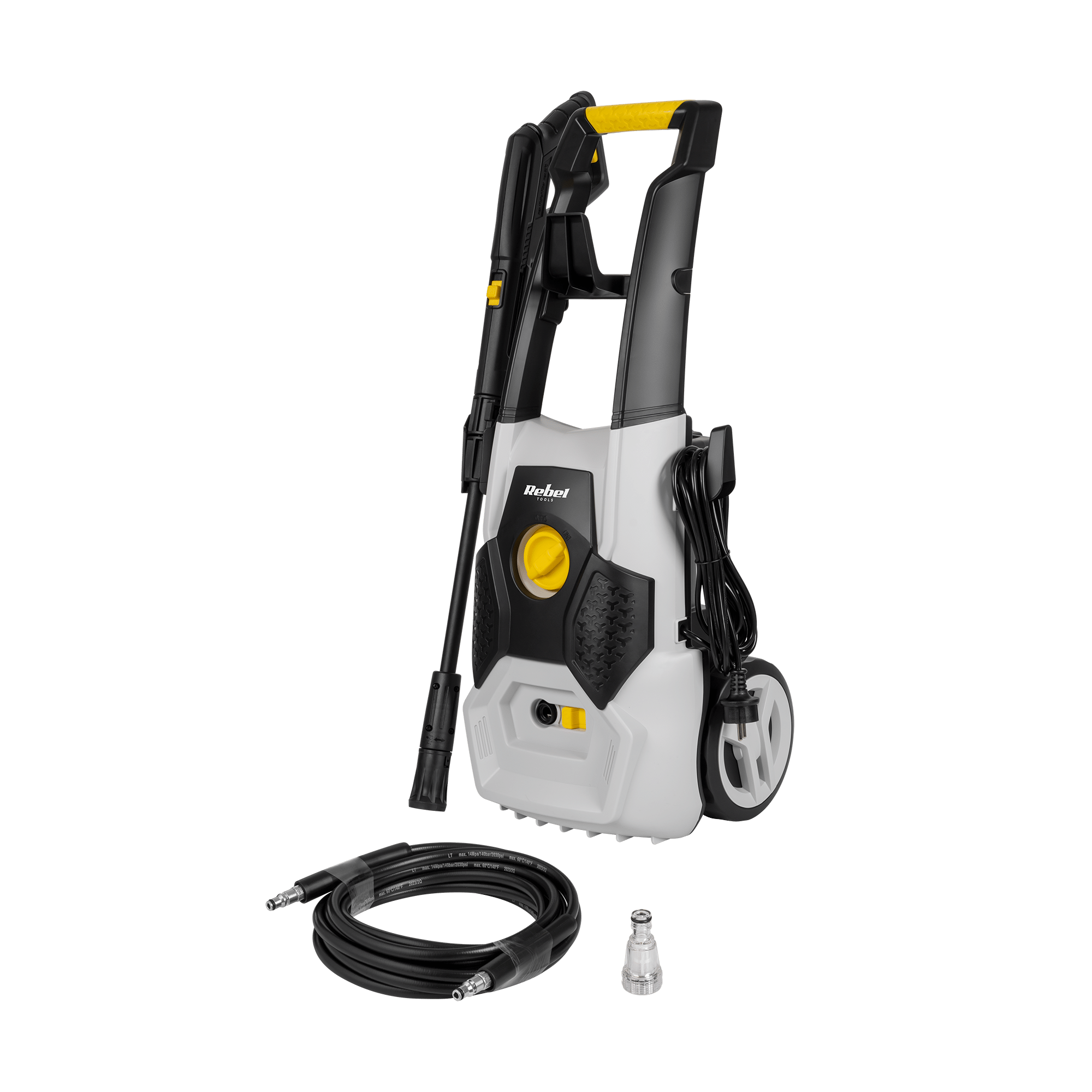 Пральна машина Rebel оснащена двигуном потужністю 1800 Вт, який у поєднанні з ефективним насосом, що перекачує 360 літрів води на годину, здатний створювати тиск до 140 бар, що ефективно видаляє стійкий бруд з різних типів поверхонь.