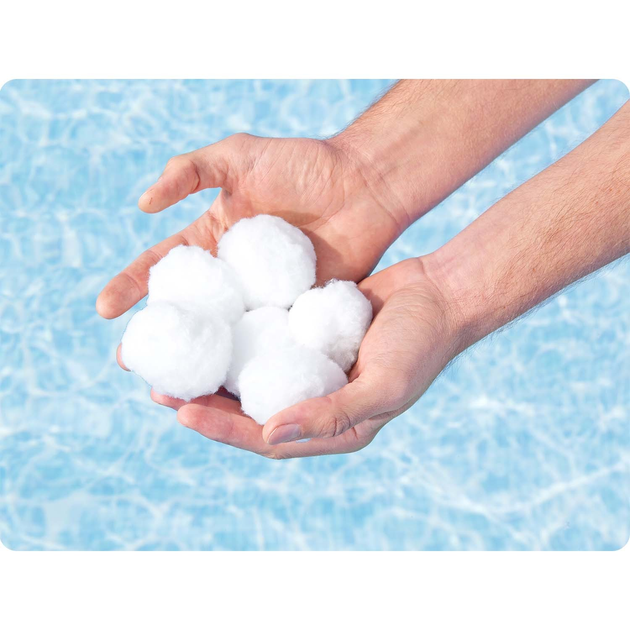 Збільшує ефективність піщаного насоса за рахунок зниження тиску, що дозволяє збільшити швидкість потоку та збільшити термін служби продукту. Полісфера виглядає як ватні диски, виготовлена з легкого матеріалу – на 500 г картриджа фільтра йде 18 кг кварцового піску. Чиста вода досягається за менший час, ніж використання піску. Рекомендується перевіряти кульки кожні 4 тижні – тільки ручне прання.