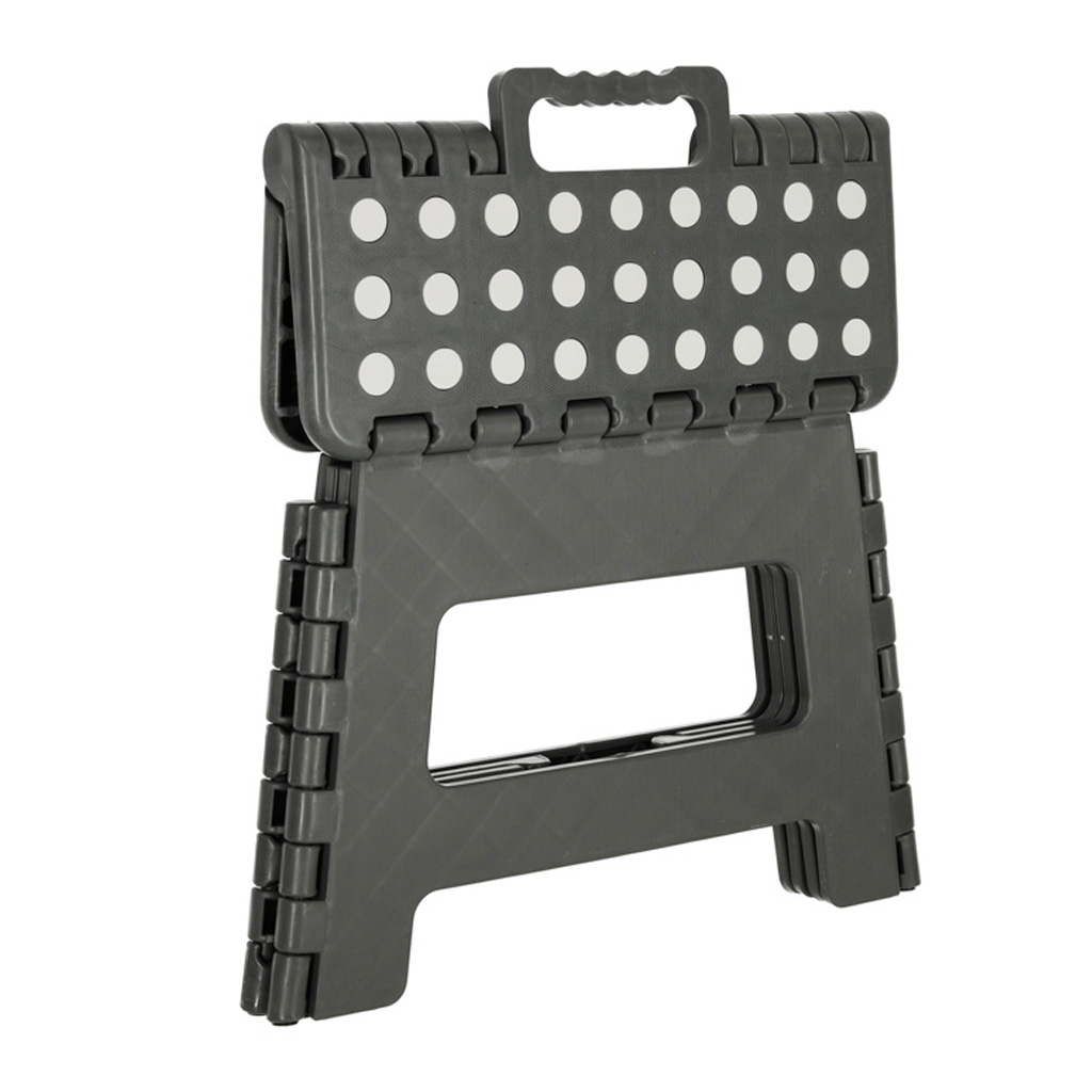 Складаний стілець темно сірого кольору. Його висота становить 39,5 сантиметрів , що дозволяє легко дістатися до важкодоступних місць. Він складається, тому займає мало місця, коли не використовується. Має нековзне покриття для безпеки під час використання.