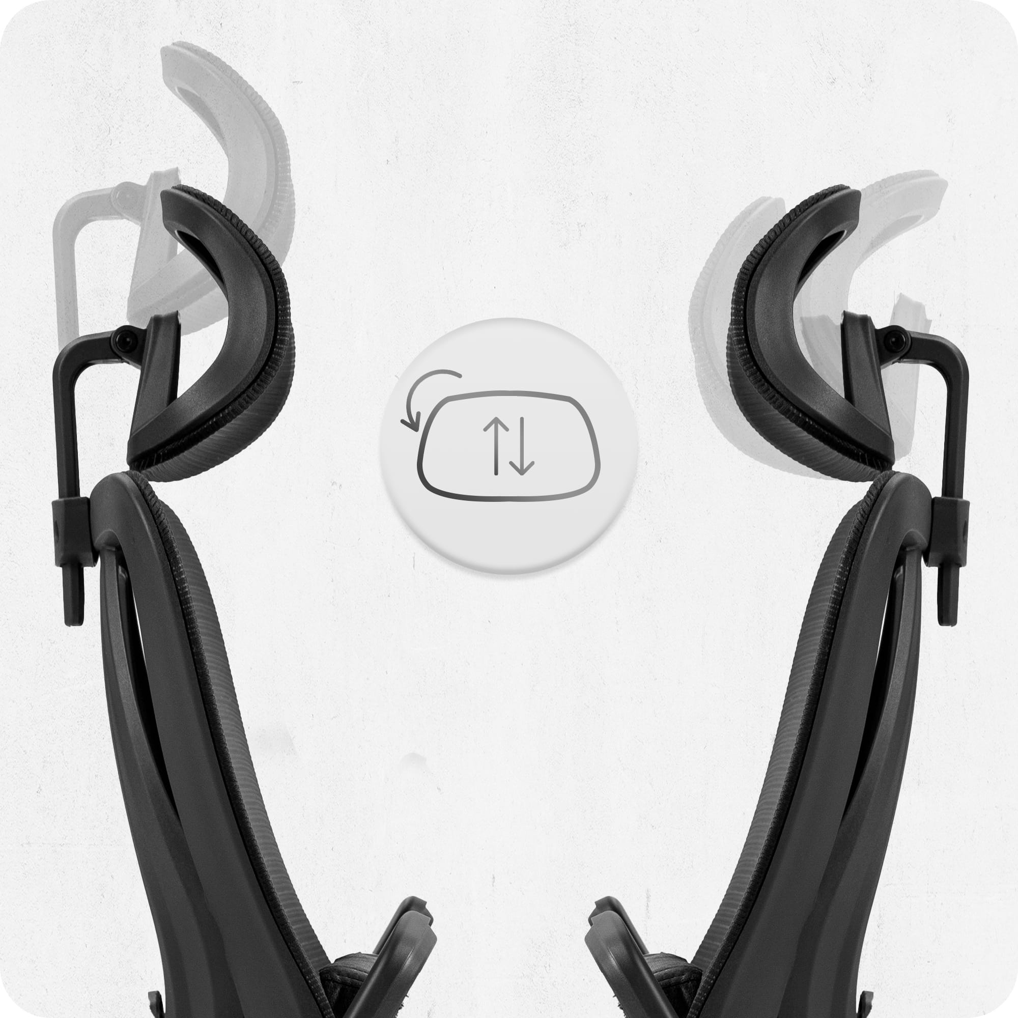 Регулювання підголівника в кріслі Cabro C507 дозволяє регулювати висоту в межах 8 см та обертати його до 60°, забезпечуючи ідеальну підтримку шиї та голови під час роботи або відпочинку.