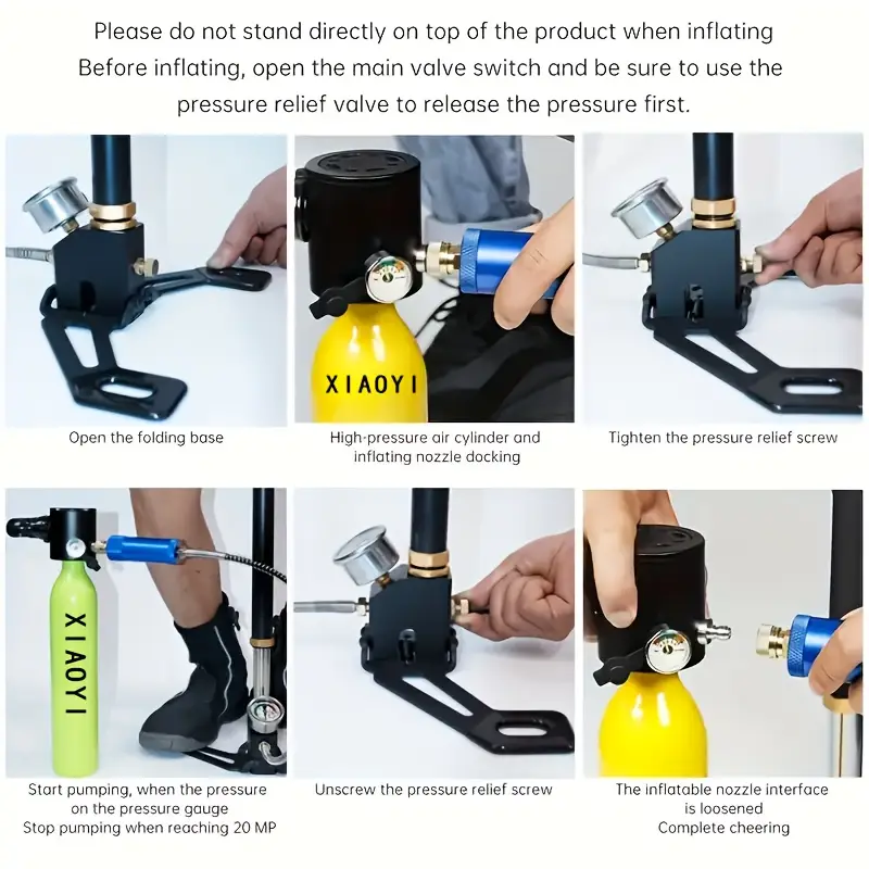 - Насос високого тиску, ручного типу, призначений для заправки балонів, камер PCP, або інших пристроїв, які вимагають великого тиску повітря (до ~30 МПа, тобто приблизно 300 атмосфер).