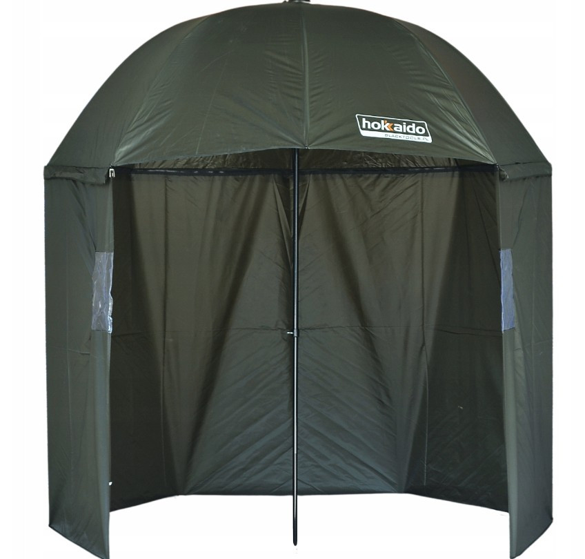 Рибальський намет-палатка Hokkaido W15027 незамінна, коли погодні умови не ідеальні для риболовлі. Наша парасолька постачається з чохлом, що робить її зручною та легкою для транспортування до місця риболовлі. Як тільки ви досягнете води, встановити парасольку дуже просто. Вся конструкція продумана та може використовуватися двома способами – як стандартна парасолька або як укриття-“намет” з ¾ стінками .