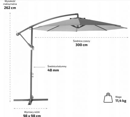 - Його вражаючий діаметр 350 см забезпечує оптимальний захист від сонця , а різноманітність доступних кольорів дозволяє ідеально поєднати його з будь-яким садом чи терасою.