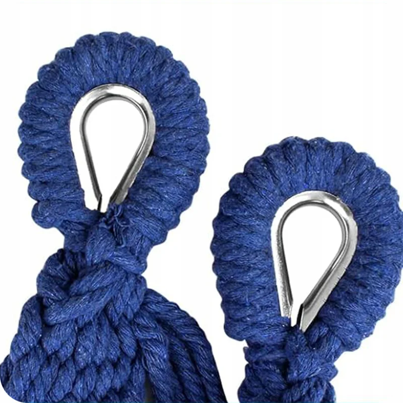 Так, наш каркас виготовлений з міцного матеріалу та покритий порошковою фарбою, що забезпечує не лише довговічність, але й стабільність під час використання гамака. Крім того, міцні бавовняні шнури забезпечують надійну підтримку.