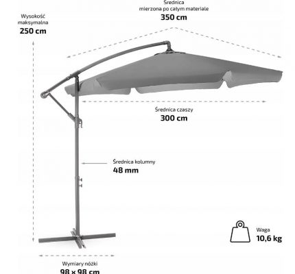 - Діаметр купола парасольки – до 3 м, 3,5 м по матеріалу