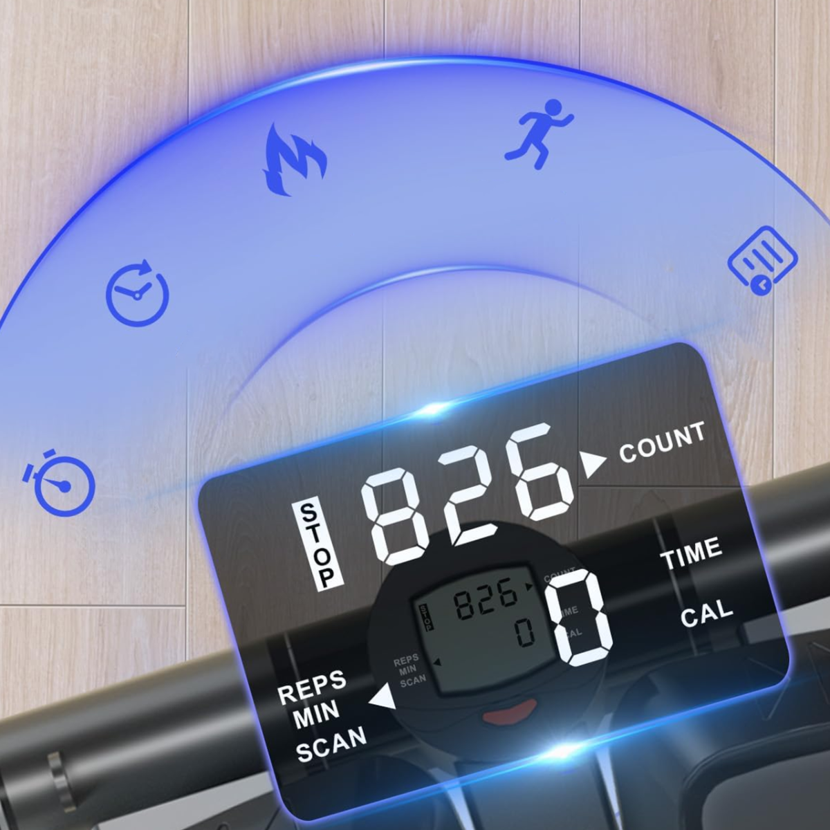 Відстежуйте свій прогрес у режимі реального часу за допомогою легкочитаного РК-екрана . Дивіться час тренування, кількість кроків та спалені калорії. Режим SCAN автоматично перемикає дані, щоб ви могли зосередитися лише на тренуванні.