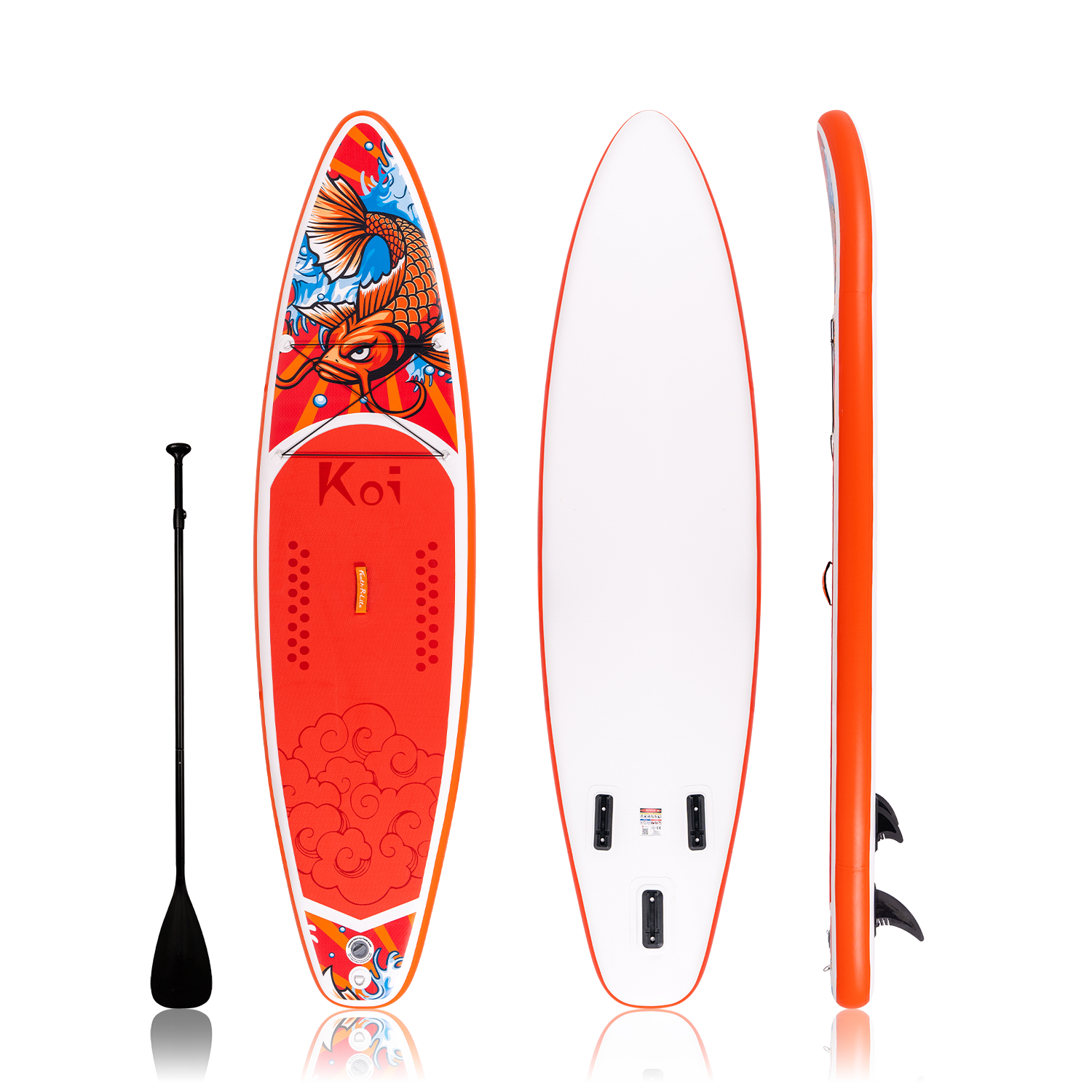Ультралегка та портативна надувна дошка для веслування стоячи Koi 11 футів універсальна та підходить для різних видів активного відпочинку, таких як йога, дослідження пляжу, фітнес-тренування та самостійна риболовля. Її стійкість та простір на палубі дозволяють легко надувати її, веслувати та займатися різними вправами.