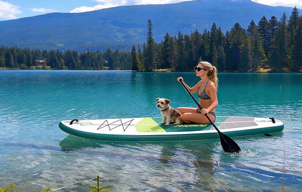 SUP-дошка надувна FunWater SUPFW69A 3.35м (зелений/білий) добре підходить для прогулянок на озерах, річках і морі, а також для початківців і спокійного катання. Завдяки продуманій конструкції дошка легко керується та забезпечує впевнене відчуття на воді.