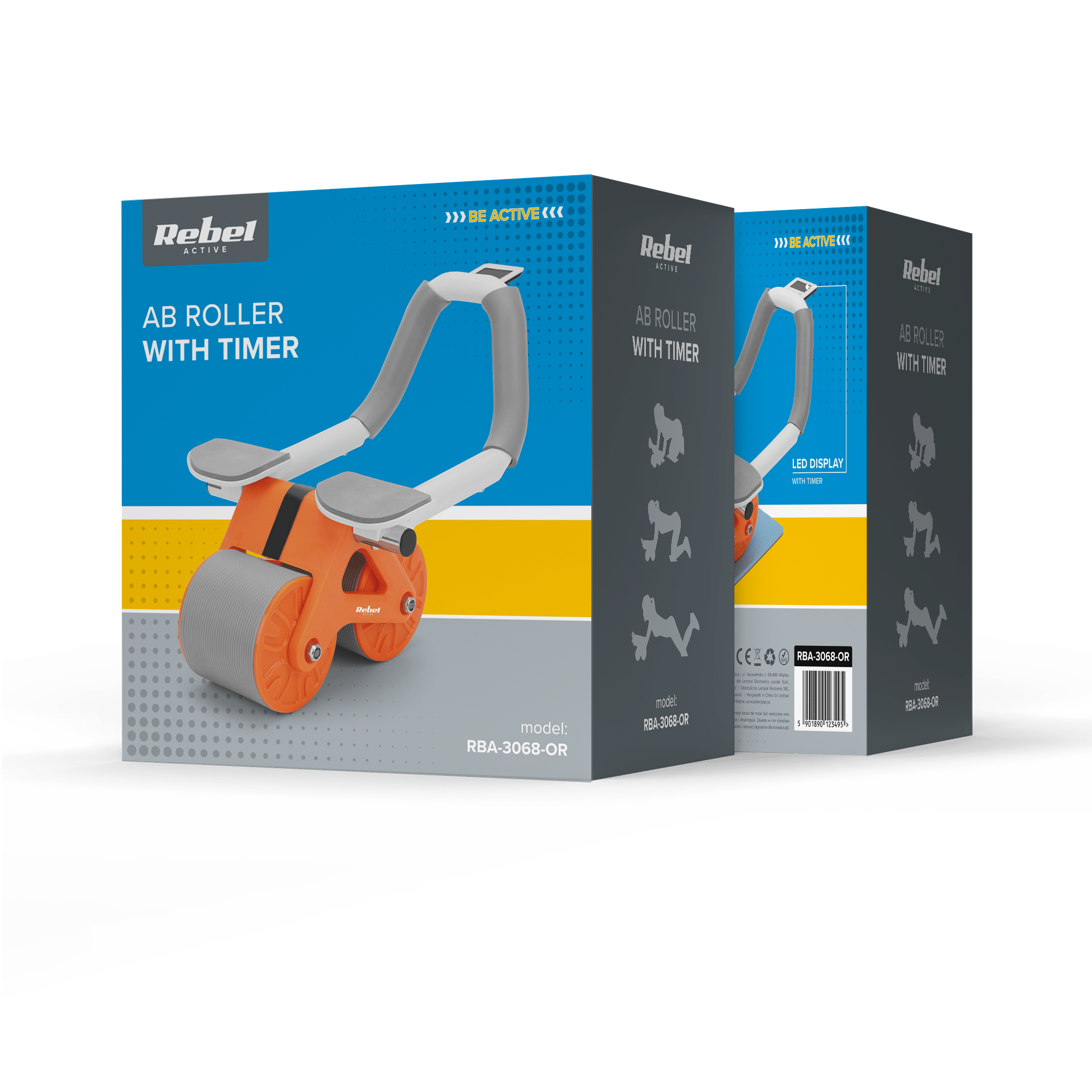 Тренажер для пресу з таймером, роликове колесо AB-3, сіро-помаранчевий, REBEL ACTIVE