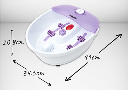 Багатофункціональний масажер для ніг з ручкою для перенесення. Використовується для релаксації та оздоровлення. Дозволяє проводити різні види масажу: бульбашковий, вібраційний, сухий і тепловий. Підтримка температури води забезпечує комфортний масаж протягом часу, коли вода зазвичай охолола. Масажер позитивно впливає на кровопостачання ніг, а також через нервові закінчення, розташовані на підошвах ніг, благотворно впливає на весь організм. Це також дає можливість розслабитися після насиченого напругою дня або після періоду ходьби в незручному взутті.