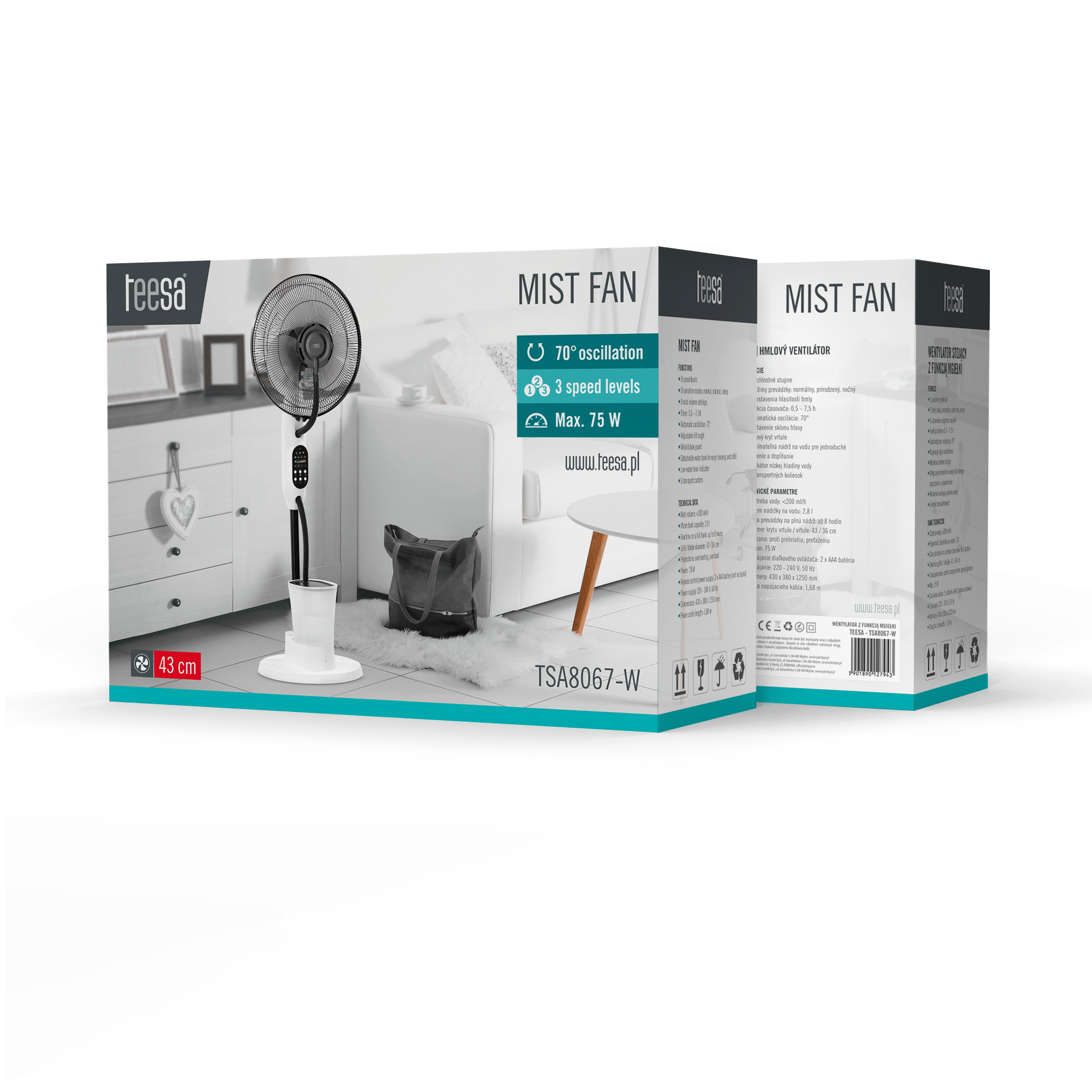Вентилятор Teesa TSA8067-B з функцією туману – білий