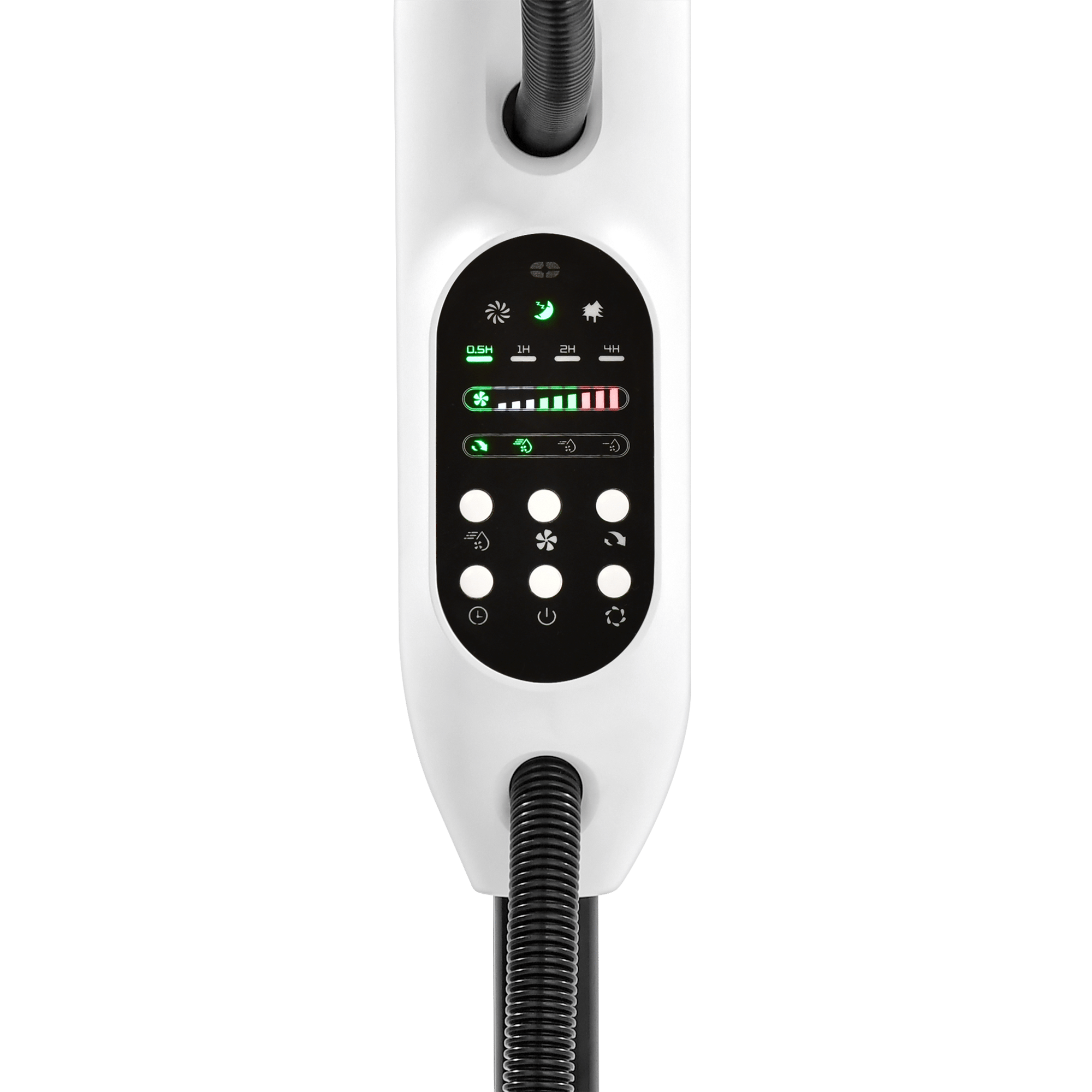 Вентилятор Teesa оснащений практичним таймером, який дозволяє встановити час роботи від 0,5 до 7,5 годин. Це ідеально підходить для використання вночі або коли вас немає – пристрій автоматично вимкнеться, забезпечуючи комфорт без зайвого споживання енергії. Керування часом інтуїтивно зрозуміле завдяки легкочитаному РК-дисплею.