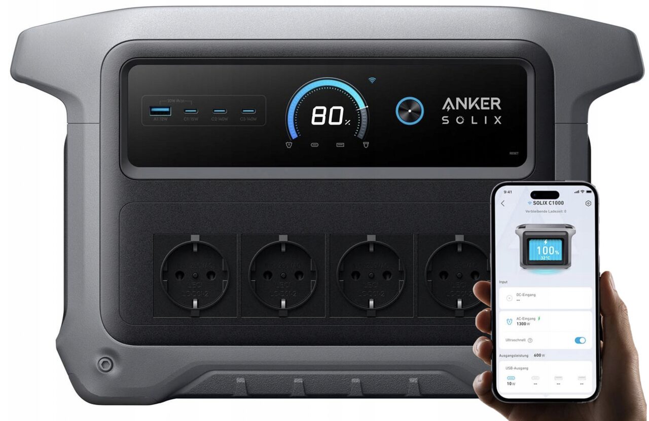 Зарядна станція Anker SOLIX C1000X Gen 2 Вона також підтримує швидке заряджання й може працювати зі сонячними панелями, що робить її універсальним джерелом живлення як для дому, так і для активного відпочинку.